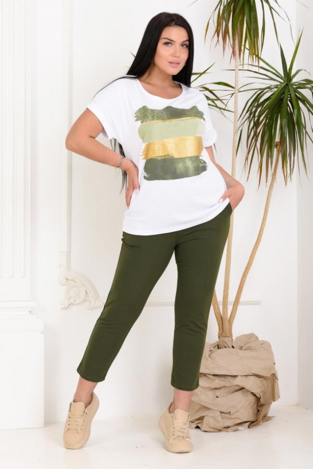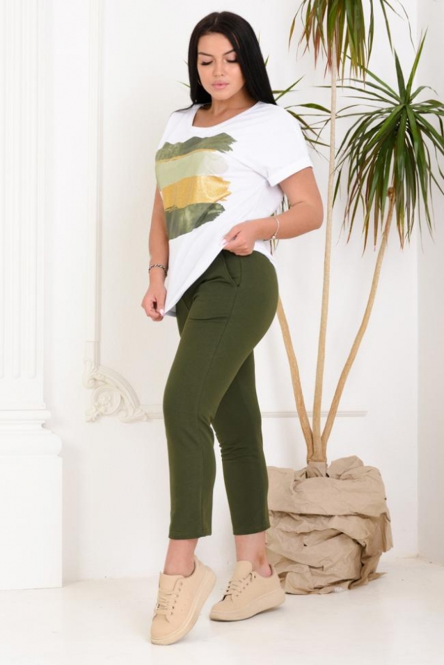 Женские брюки джоггеры с карманами по бокам - вариант на каждый день. Идеальная посадка с высокой талией. Брючки комфортны, не ограничивают движений. Футболка 4436 завершает образ, создавая единый комплект. Прекрасный образ на прохладный вечер или повседневный лук.