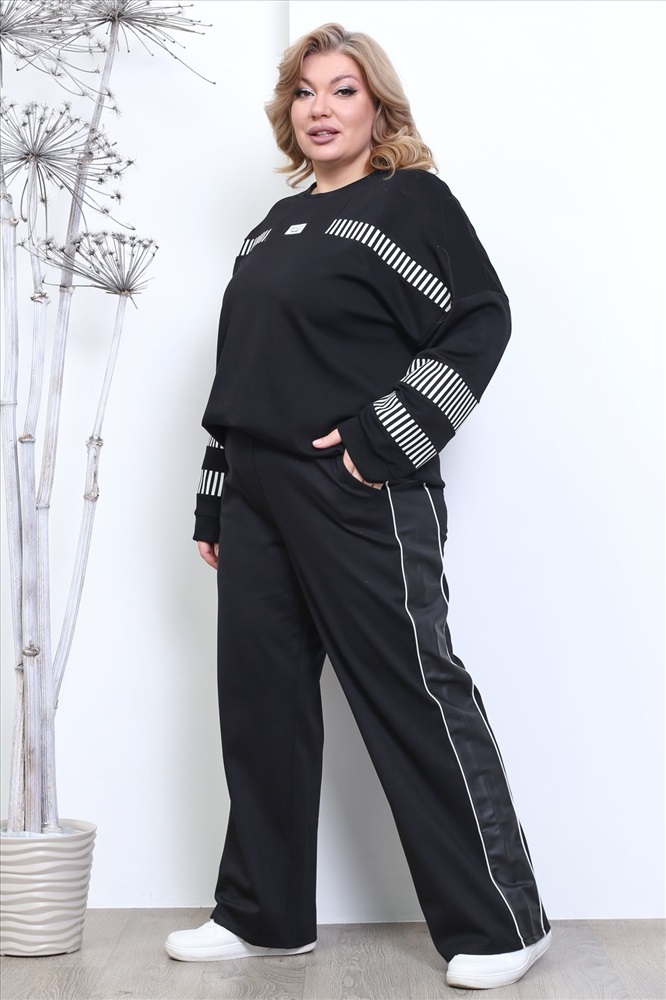 Брюки с кожаными лампасами черные