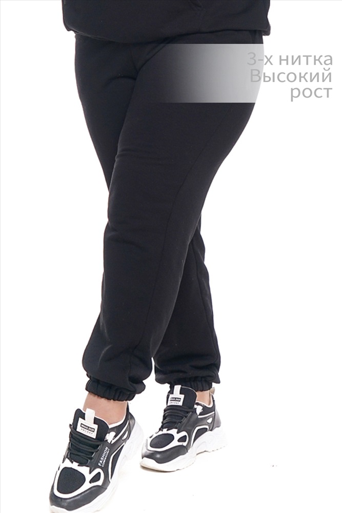 Брюки спортивные трикотажные черные (трехнитка) высокий рост