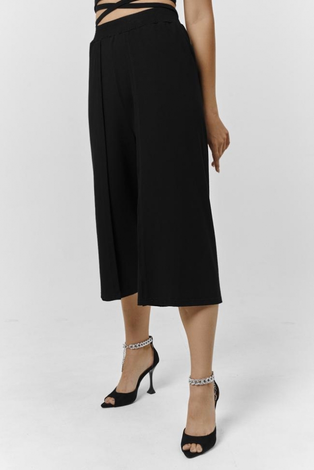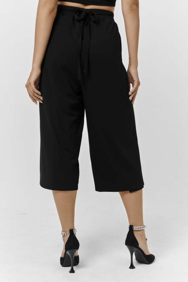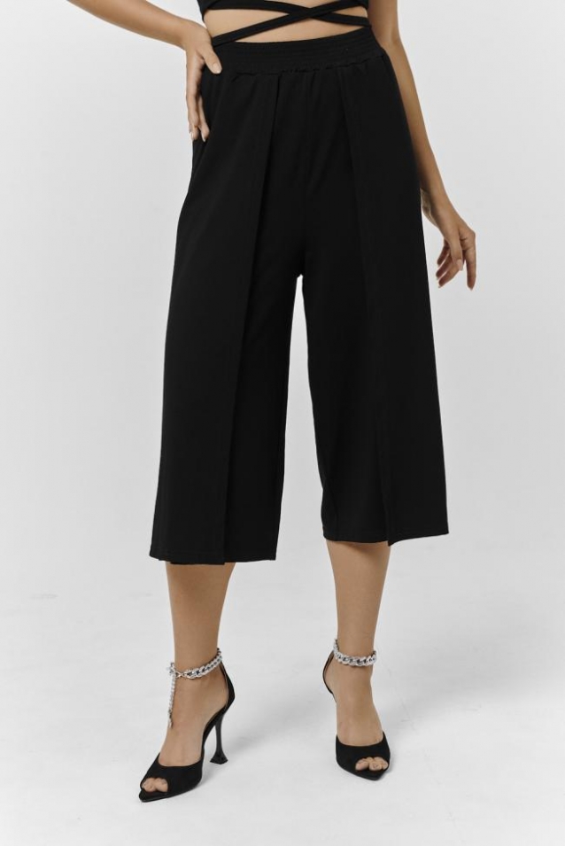 Брюки женские свободные, короткие, без боковых швов, до середины икры.
