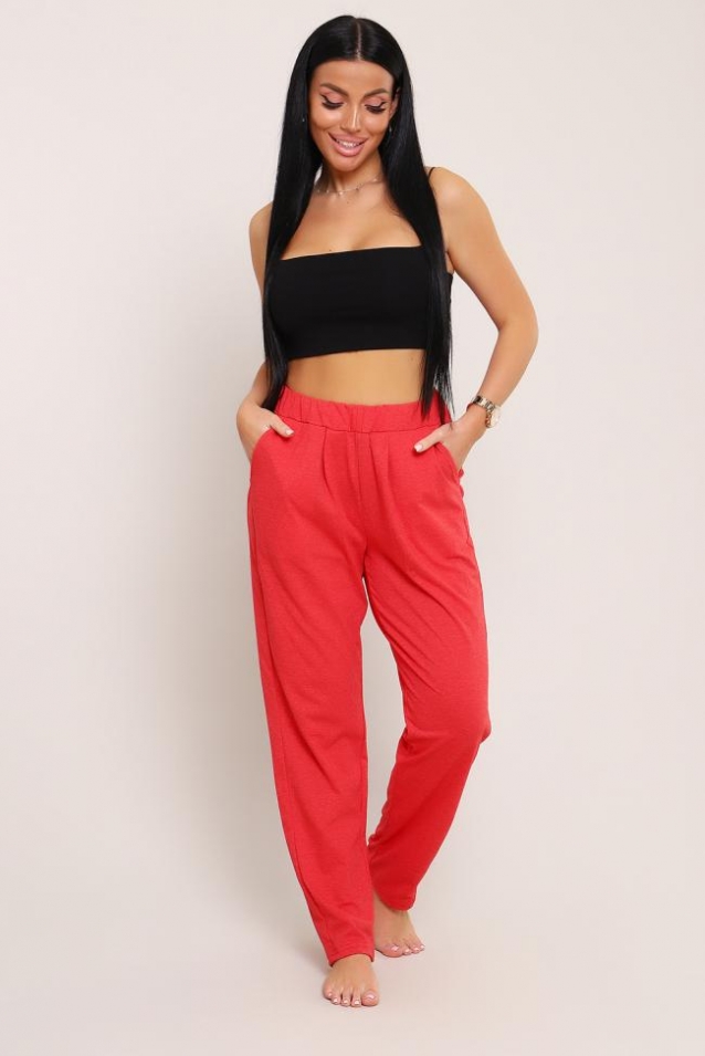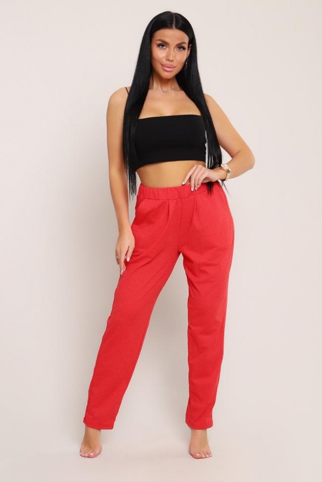 Брюки домашние, с карманами, пояс втачной на резинке, спереди заложены мягкие складки для комфорта. Ткань мягкая, хлопковая. Идеальны для дома и поездок в поезде.