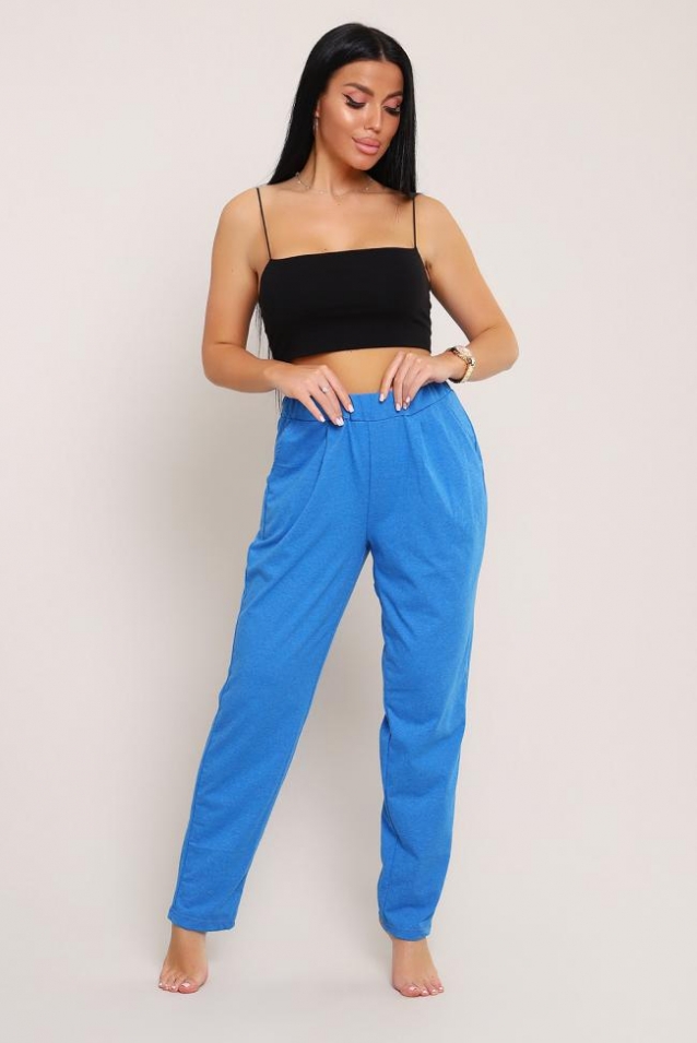 Брюки домашние, с карманами, пояс втачной на резинке, спереди заложены мягкие складки для комфорта. Ткань мягкая, хлопковая. Идеальны для дома и поездок в поезде.