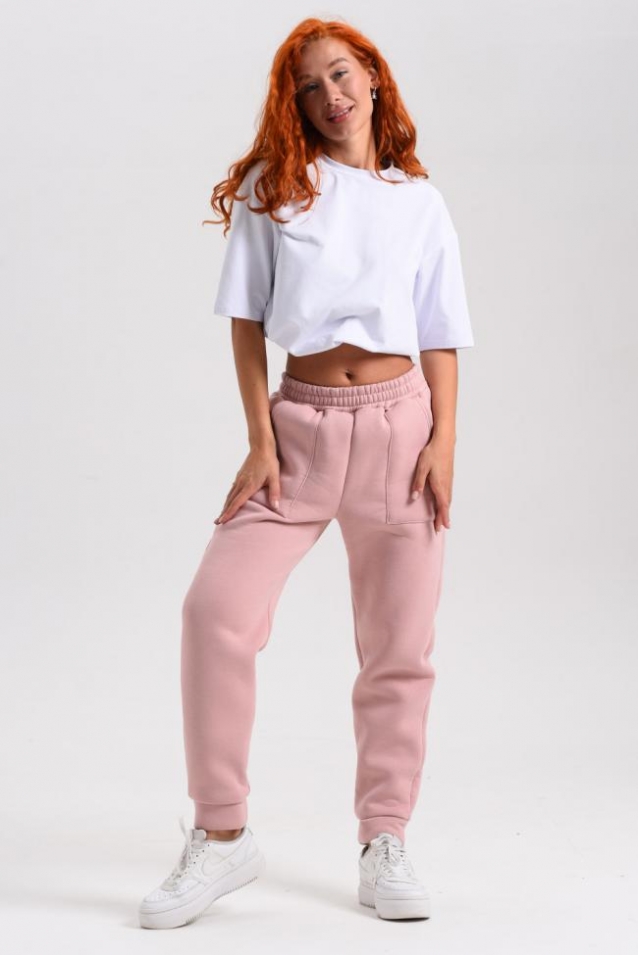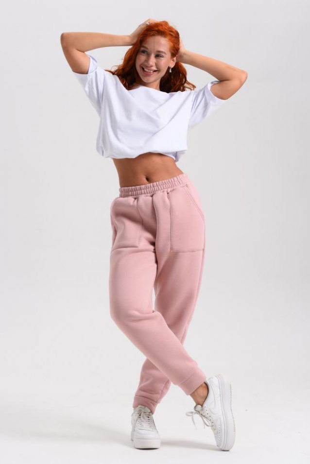 Брюки утепленные, на поясе, свободные, с боковыми накладными карманами, на эластичном манжете по низу.