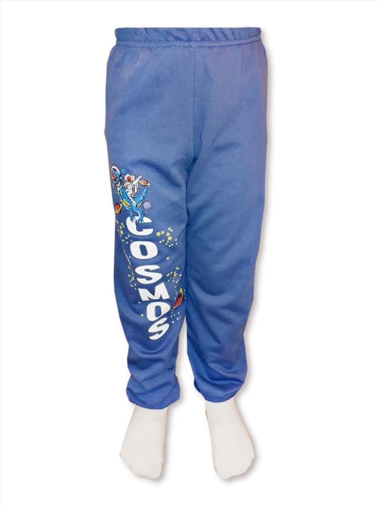 Стильные штаны для мальчика, изготовленные из 100% хлопка - футера с начёсом. На поясе - удобная мягкая резинка, по низу штанов - широкие эластичные манжеты. Модель украшает классный принт на одной половинке.