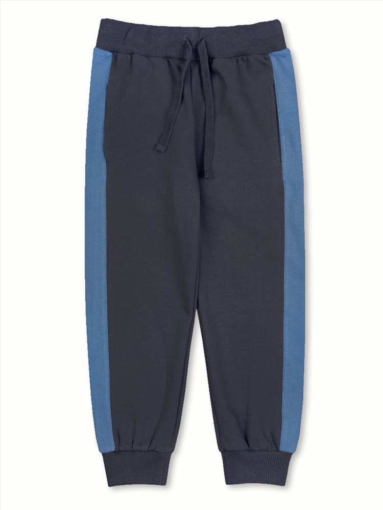Модные брюки для мальчика, выполненные из 100% хлопка - футера 2-нитки с мягким начёсом внутри. На поясе - удобная эластичная резинка с завязками, по бокам - два внутренних кармана. По низу изделия имеются мягкие трикотажные манжеты. Модель украшают контрастные лампасы по всей длине брюк.