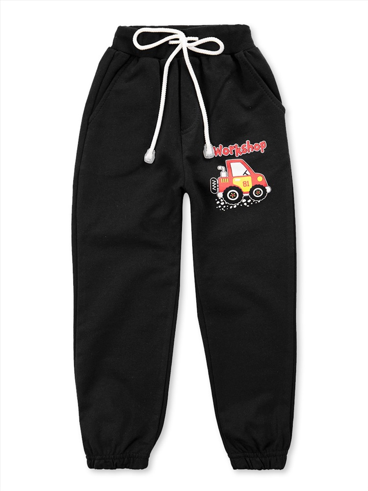 Классные штаны для мальчика, изготовленные из плотного материала - футера 2-нитки. На поясе удобная широкая резинка с завязками, по бокам - два внутренних кармана. По низу изделия имеются резинки. Модель украшает симпатичный принт на одной половинке.