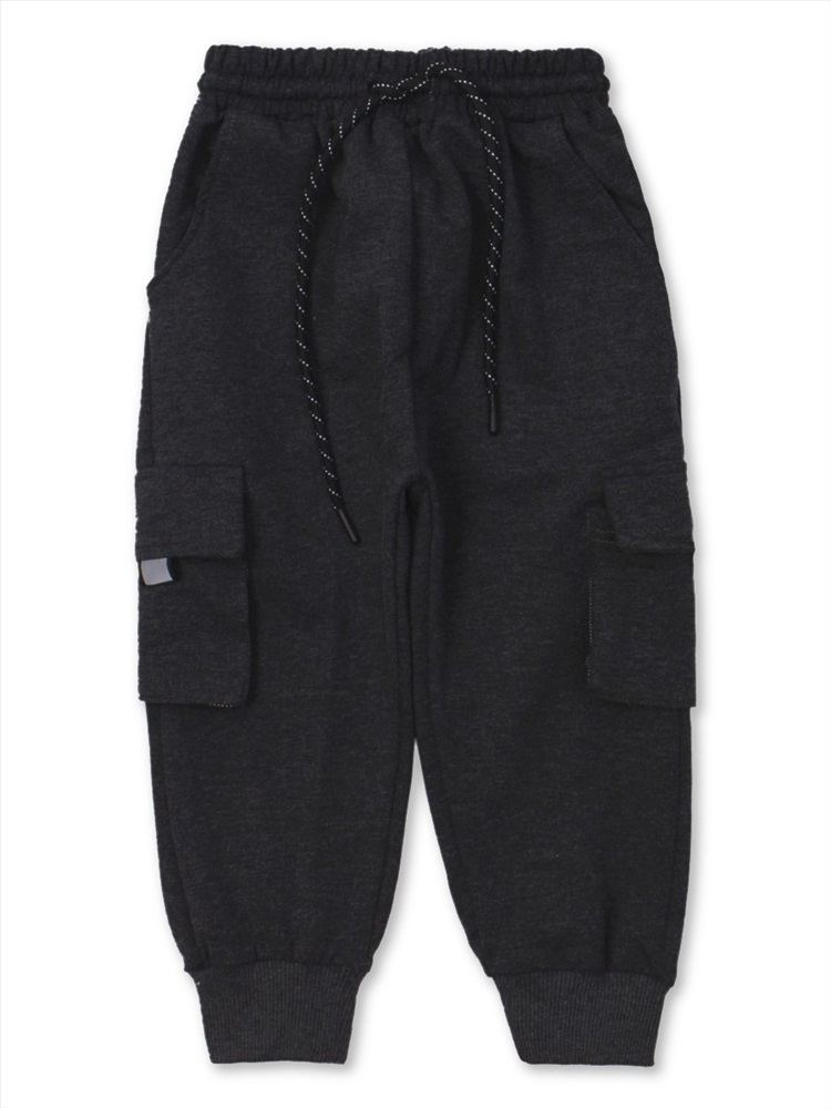 Классные брюки для мальчика, изготовленные из плотного материала - футера 2-нитки. На поясе удобная широкая резинка с завязками, по бокам два внутренних кармана и два накладных кармана. По низу изделия имеются мягкие трикотажные манжеты. Модель украшает стильный принт на нашивке в задней части штанов.