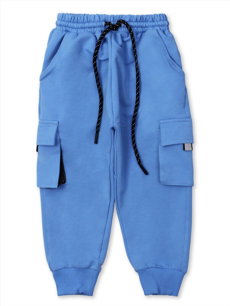 Классные брюки для мальчика, изготовленные из плотного материала - футера 2-нитки. На поясе удобная широкая резинка с завязками, по бокам два внутренних кармана и два накладных кармана. По низу изделия имеются мягкие трикотажные манжеты. Модель украшает стильный принт на нашивке в задней части штанов.