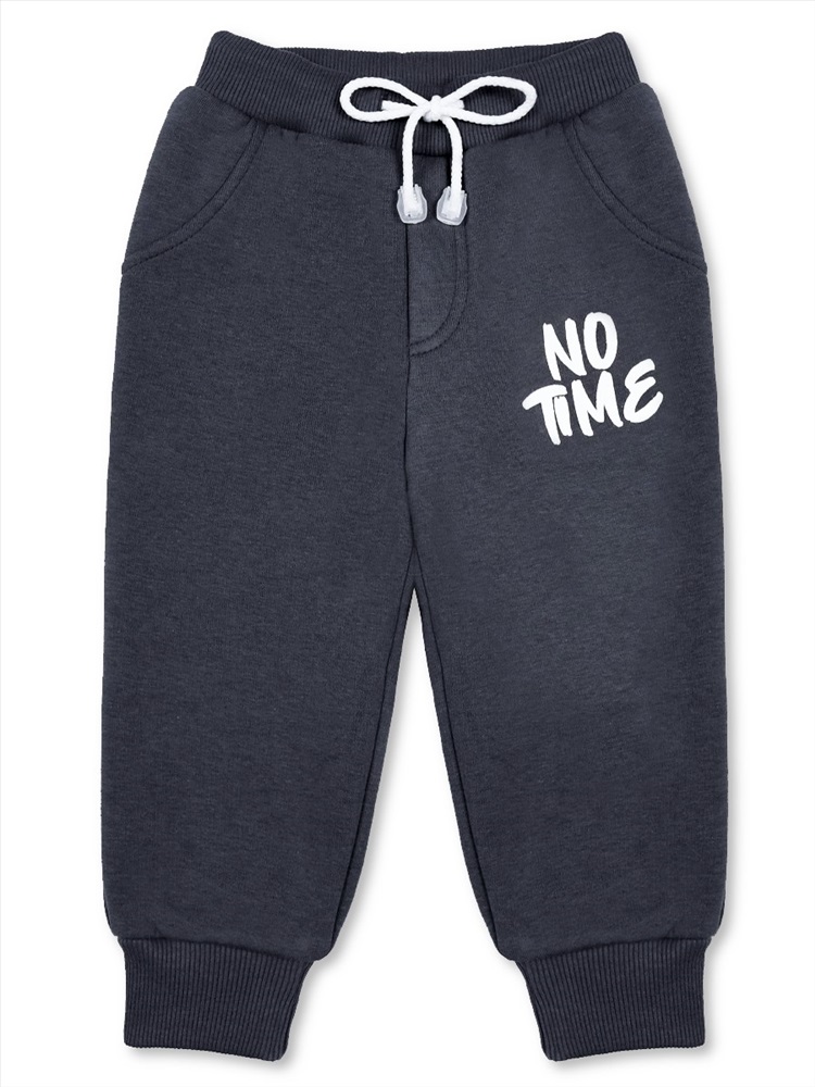 Отличные теплые штаны для мальчика, изготовленные из плотного материала - футера 3-нитки с начёсом. На поясе удобная широкая резинка с завязками, по низу - мягкие трикотажные манжеты. Модель украшают классный принт на одной половинке и имитация карманов по бокам.