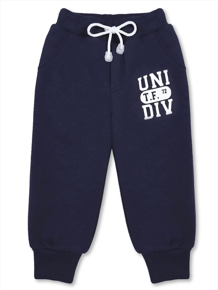 Отличные теплые штаны для мальчика, изготовленные из плотного материала - футера 3-нитки с начёсом. На поясе удобная широкая резинка с завязками, по низу - мягкие трикотажные манжеты. Модель украшают классный принт на одной половинке и имитация карманов по бокам.