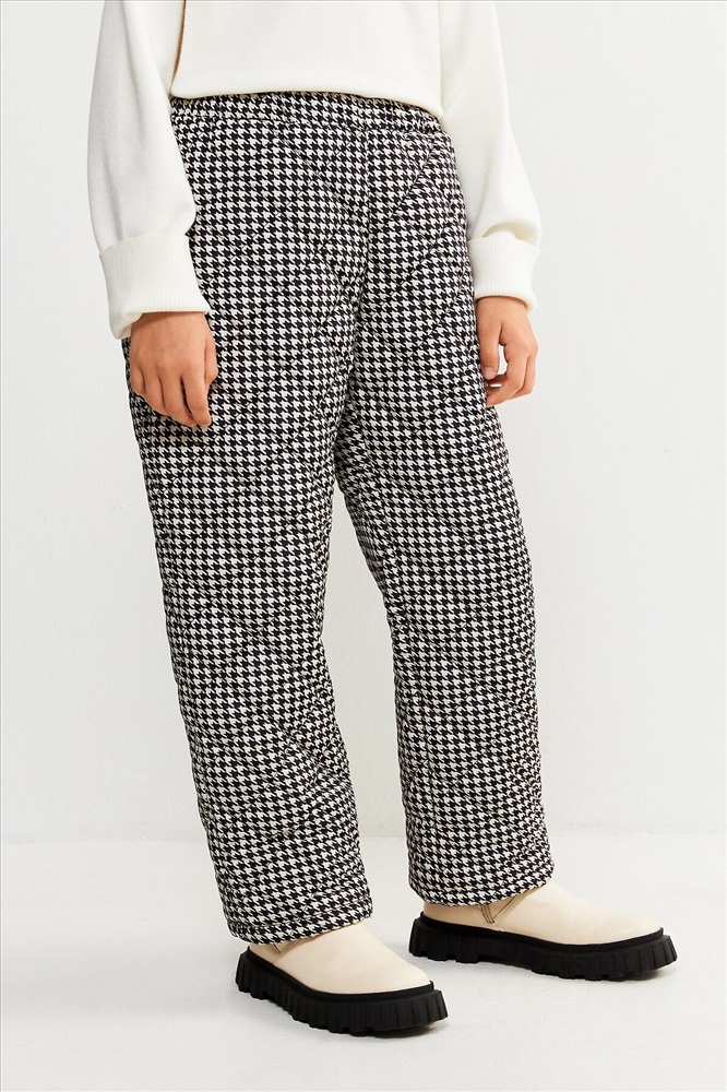 ID товара: 1047607 Состав: 100% Полиэстер Сезон: Осень/Зима Длина: Полная Фасон: Прямые Рисунок: Гусиная лапка Декоративные элементы: Принт Основная ткань: Полиэстер Стиль: повседневный Страна бренда: Россия Страна производства: Китай Брюки (утепленные)детские для девочек Mauma бежевый с черным Комментарии к товару