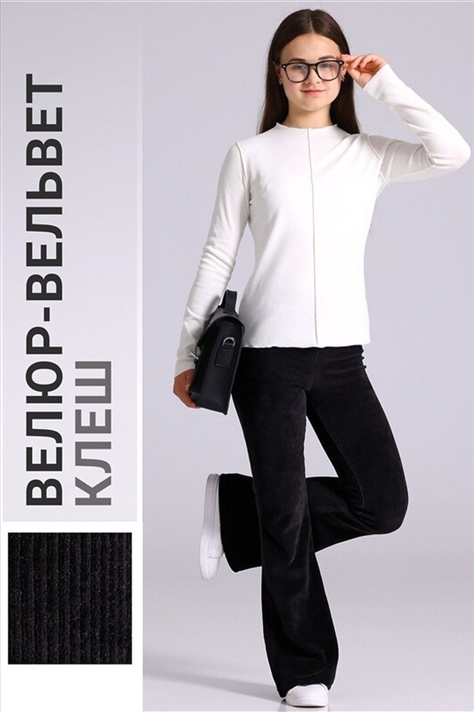 Брюки-клёш для девочки выполнены из мягкого вельвета в рубчик. Изделие со средней высотой посадки, без карманов на удобном эластичном поясе. Уход: только машинная стирка (руками не стирать!) при температуре 40 градусов, без предварительного замачивания.