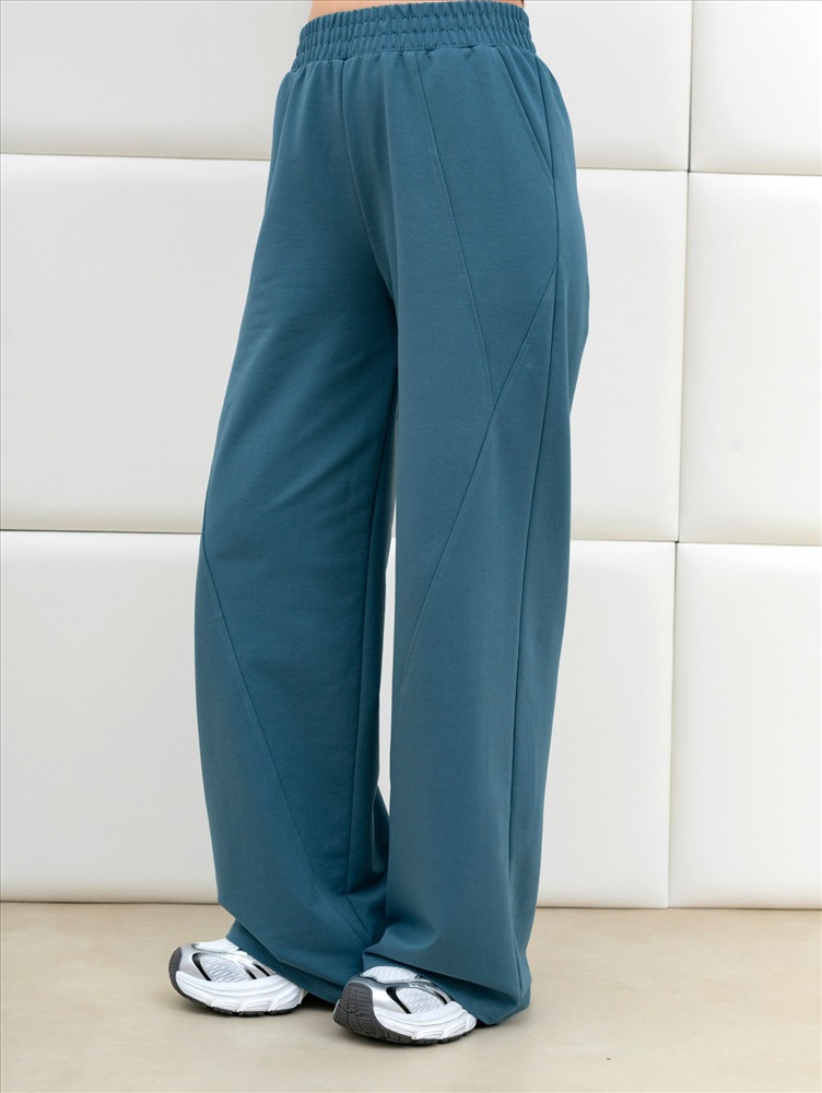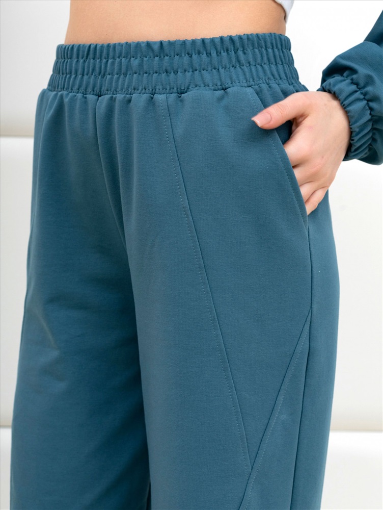 Состав: 80% хлопок, 14% ПЭ, 6% лайкра Ткань: Футер 2-х нитка с полиэстером Брюки молодежные из трикотажного гладкокрашенного полотна «футер», длинные, на притачном поясе с эластичной тесьмой внутри, с карманами в боковых швах. Правая и левая половины брюк состоят из трех частей, скроенных по косой, с отделочными строчками по шву стачивания.