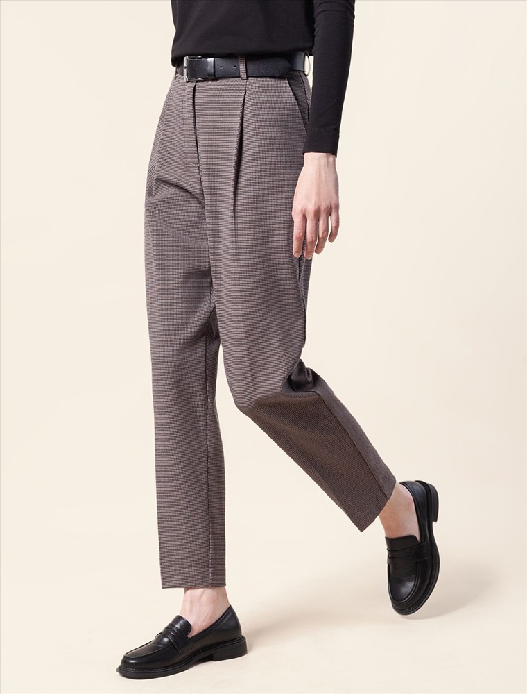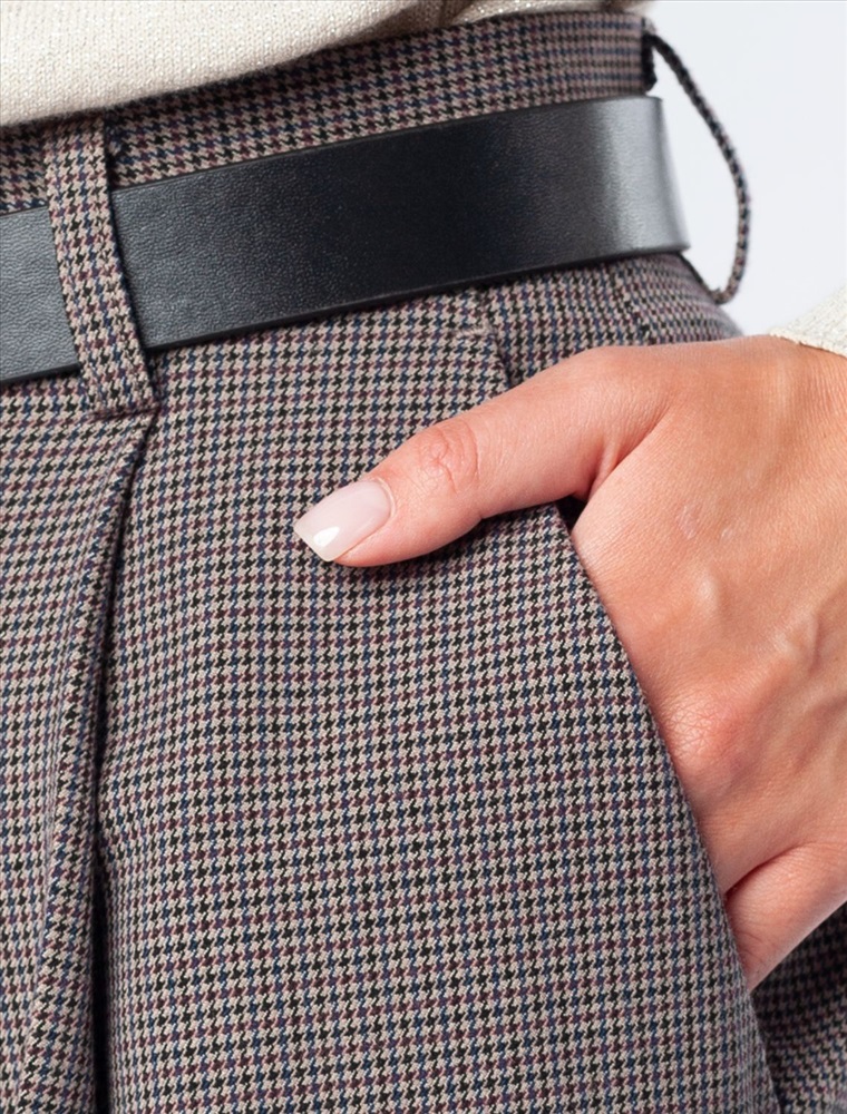 Брюки-бананы в мелкую "лапку" выполнены из поливискозы с добавлением нити эластана. Материал хорошо пропускает воздух, поэтому в изделии не будет жарко даже в отопительный сезон. Комфортная посадка на талии и стрелки визуально вытягивают силуэт. Изделие дополнено защипами спереди и двумя боковыми карманами, одним карманом в листочку сзади. Брюки-бананы отлично подходят обладательницам фигуры песочные часы, а также женщинам с узкими бедрами помогут уравновесить пропорции.