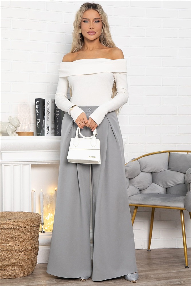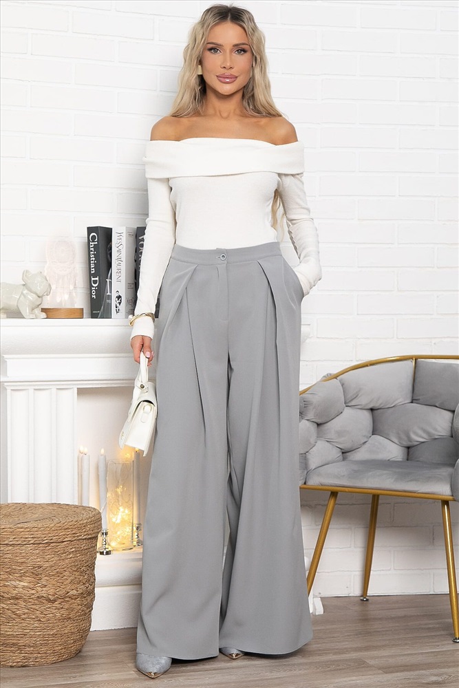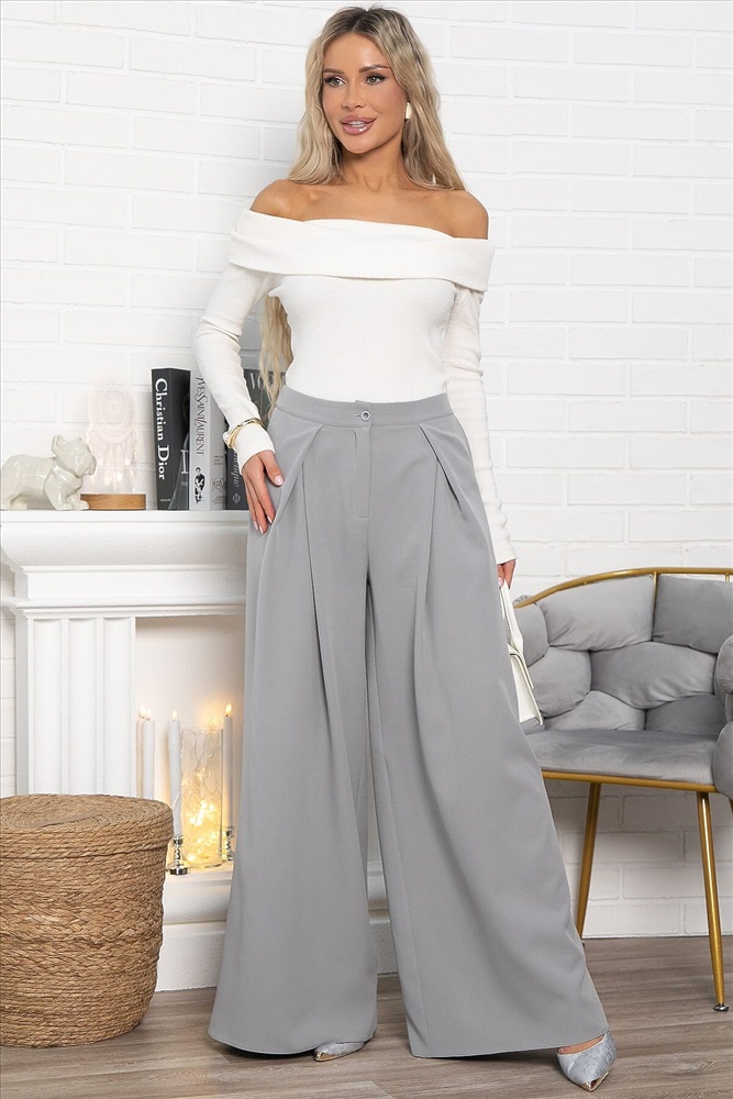 ID товара: 1230195 Состав: 95% полиэстер, 5% эластан Сезон: Весна/Лето Длина: Полная Фасон: Расклешенные Стиль: Повседневные Страна бренда: Россия Страна производства: Россия Состав : 95% полиэстер, 5% эластан Материал : вискоза костюмная Цвет : серый Принт : отсутствует Карманы : есть Резинка в поясе : да Вид застежки : молния и пуговица Тип посадки брюк : средняя Пояс брюк : втачной Крой брюк : свободный Фасон брюк : классические Декоративные элементы : отсутствуют Обхват бёдер : 44 - 122, 46 - 128, 48 - 132, 50 - 136, 52 - 140 Обхват талии : 44 - 68, 46 - 72, 48 - 78, 50 - 82, 52 - 86 Длина готового изделия по внутреннему шву : 44-80 см, 46-80 см, 48-80 см, 50-81 см, 52-81 см Длина готового изделия по боковому шву : 44-111 см, 46-111 см, 48-111 см, 50-112 см, 52-112 см Классические широкие брюки-палаццо — идеальный выбор для модниц, ценящих комфорт и элегантность. Эти брюки идеально подходят как для повседневной носки, так и для особых мероприятий, что делает их универсальным элементом гардероба. Спинка на резинке для удобной и комфортной посадки, а спереди встречные складки придают им стильный вид. Свободный фасон брюк гармонично сочетается с различными верхами, позволяя создавать разнообразные образы — от casual до более формальных. Добавьте эти брюки-палаццо в свой гардероб и наслаждайтесь стильными и комфортными нарядами! Внимание! Рекомендуем ориентироваться на размерную сетку и выбирать свой привычный размер, согласно размерной таблице. *Допуск отклонения длины при массовом производстве 1-3 см является нормой. Уход за изделием: Ручная стирка или стирка в машине при температуре до 30 °C, деликатный режим. Не использовать отбеливатели. Разрешена глажка при температуре до 110 °C. При глажке использовать специальную насадку на подошве утюга, гладить с паром. Не замачивать и не выжимать. Стирать изделие наизнанку, отдельно от других вещей. Комментарии к товару
