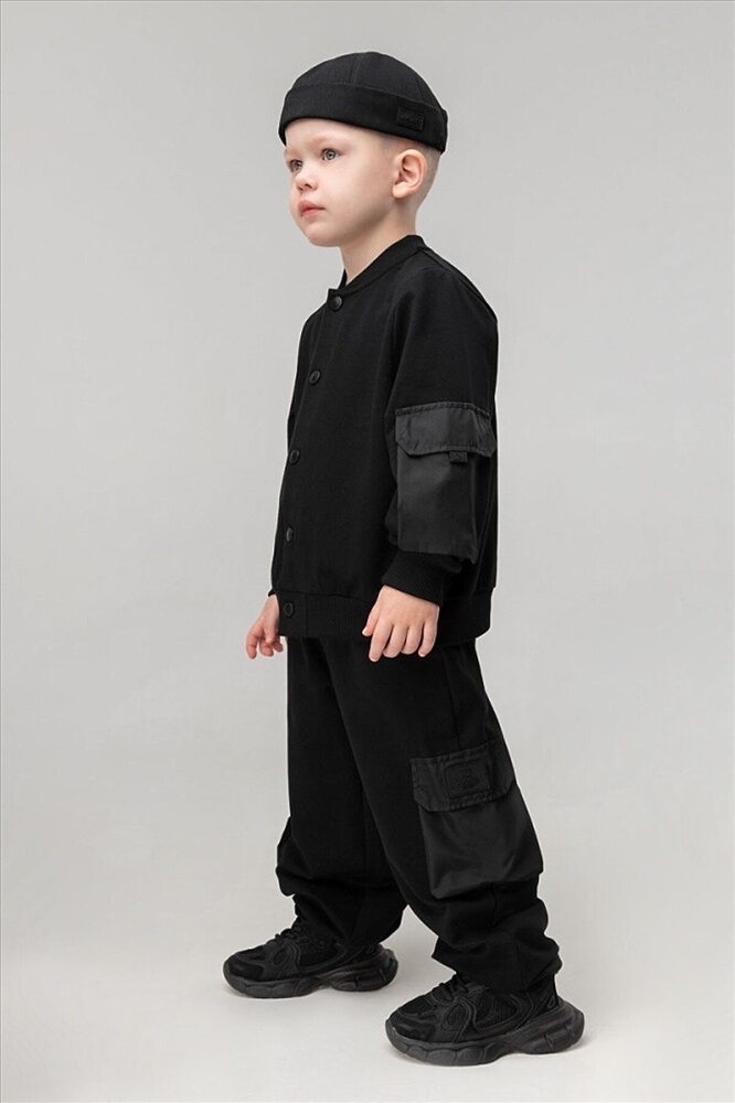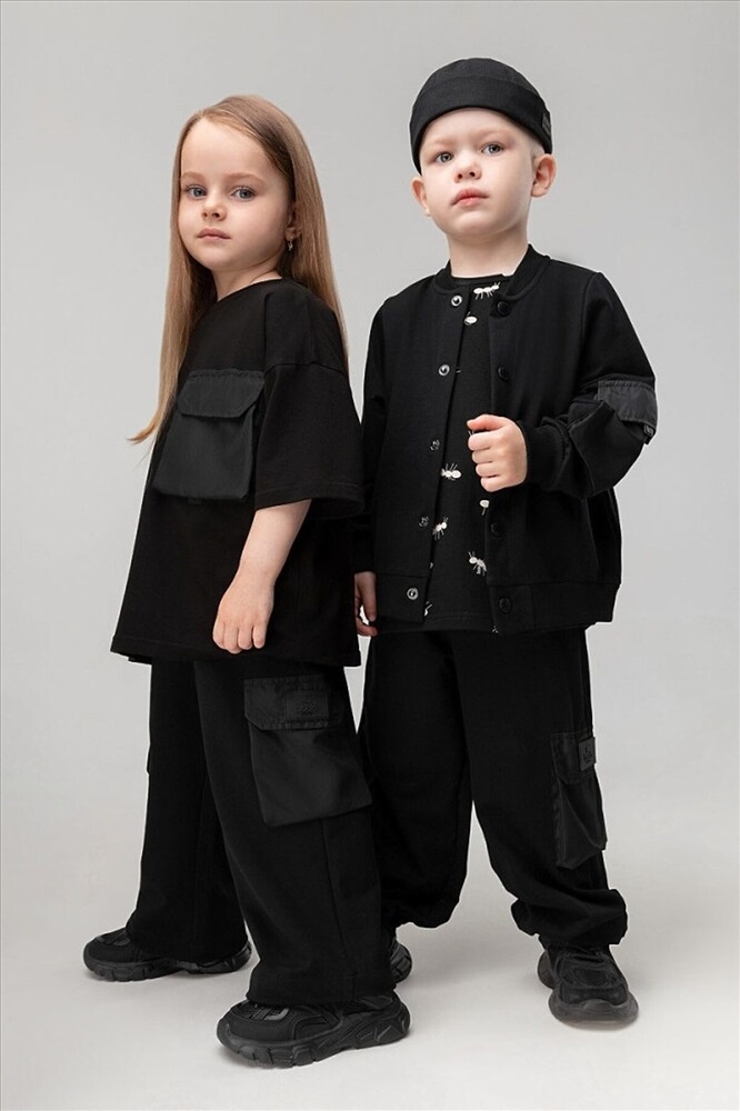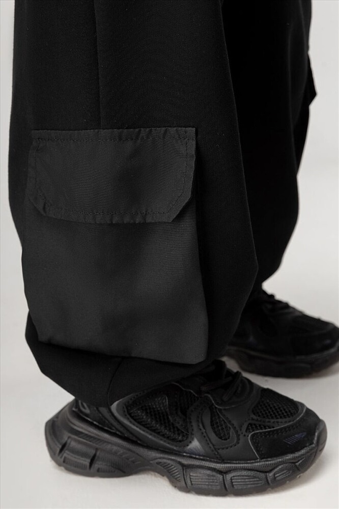Страна производства: Россия Прямые, свободные брюки, по низу с дополнительной резинкой с фиксатором для затяжки. По бокам объемные накладные карманы с клапанами.