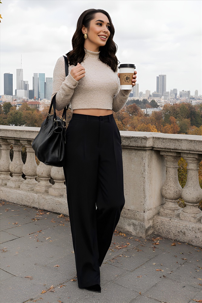 Элегантные классические брюки в чёрном цвете – основа вашего стильного гардероба! Высокая посадка выгодно подчеркивает талию, создавая женственный и утонченный силуэт. Для идеальной посадки по фигуре предусмотрена резинка по спинке пояса. Заутюженные стрелки визуально удлиняют ноги и придают брюкам строгий классический вид. Надежная застежка на молнию и пуговицу обеспечивает комфорт и уверенность в течение дня. Прекрасно вписываются в офисный дресс-код, идеально подходят для важных деловых встреч и добавляют элегантности вашему образу на особых мероприятиях.