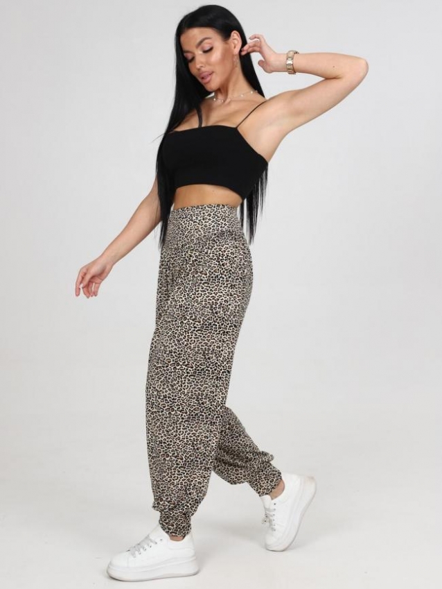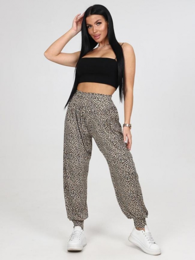 Женские брюки-шаровары выполнены из трикотажного полотна "вискоза". Широкие брюки, присборенные сверху на поясе-кокетке фигурной формы, внутри которого прикреплена эластичная лента и внизу на высокие манжеты. Комментарии к товару