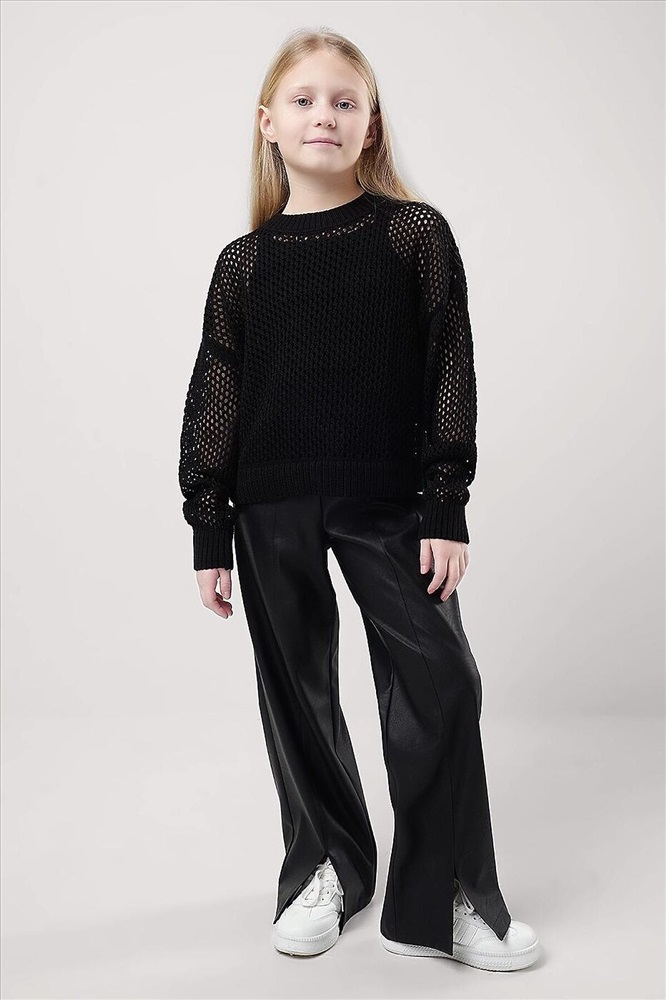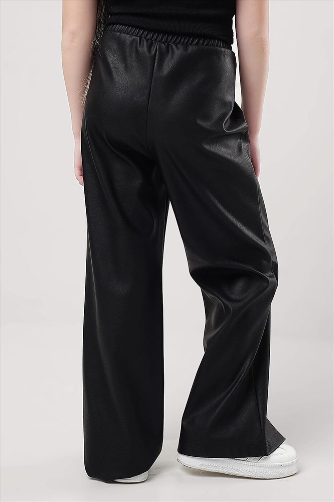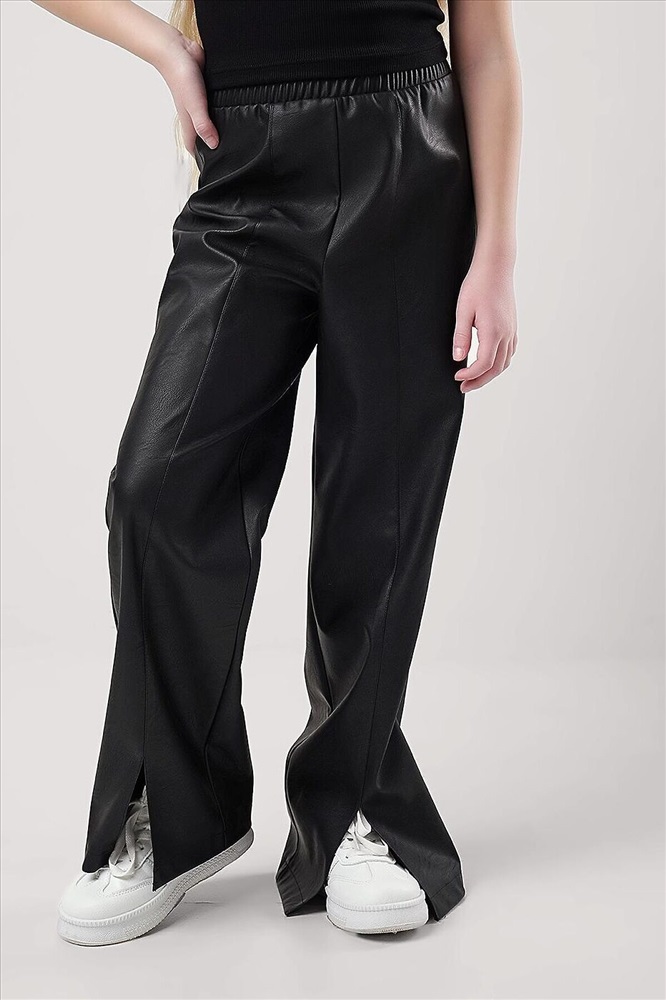 Стильные брюки из экокожи - отличное дополнение для современного образа. Рельефные швы по переду и актуальные разрезы, комфортная посадка на резинке.