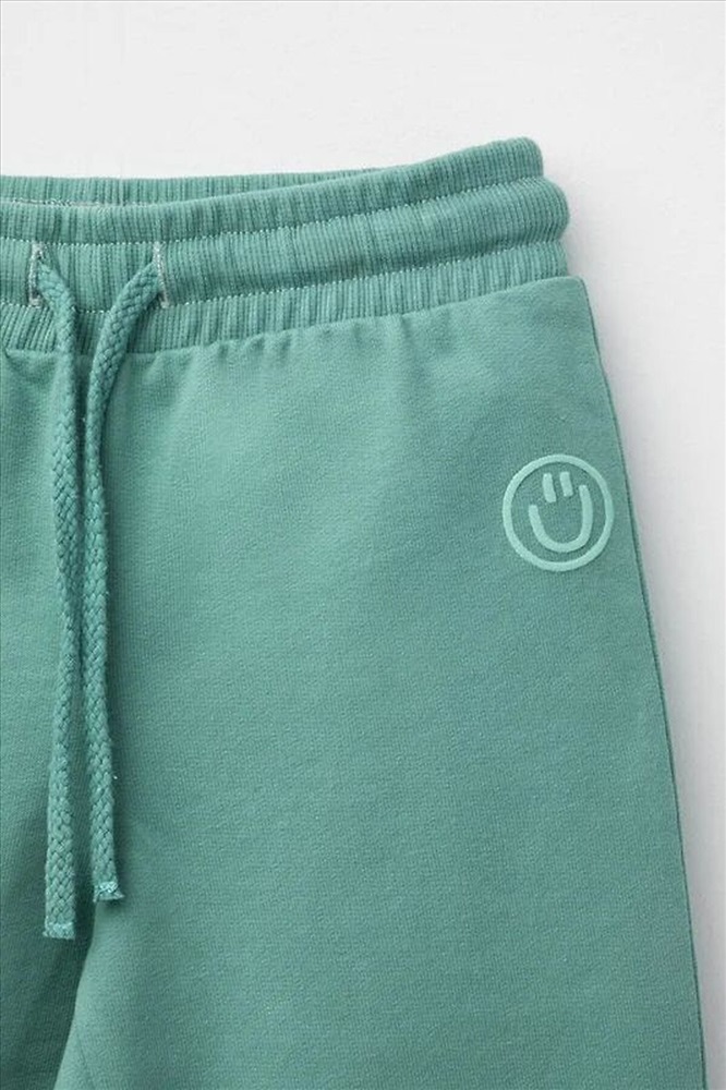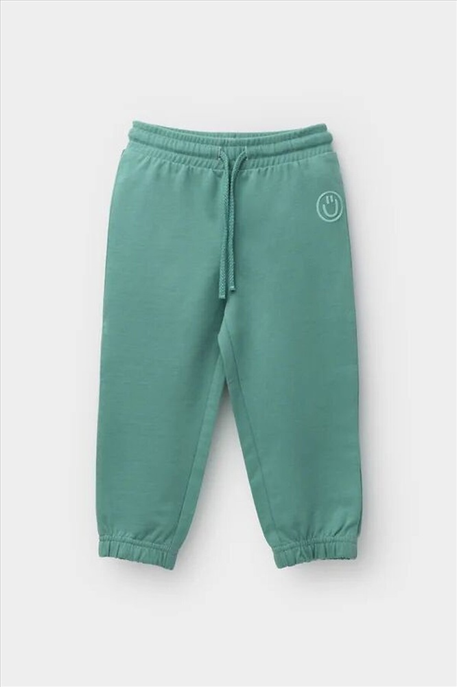 Трикотажные брюки для мальчика из петельчатого футера. Эластичный пояс на резинке регулируется по ширине с помощью шнурка, внизу эластичные манжеты.