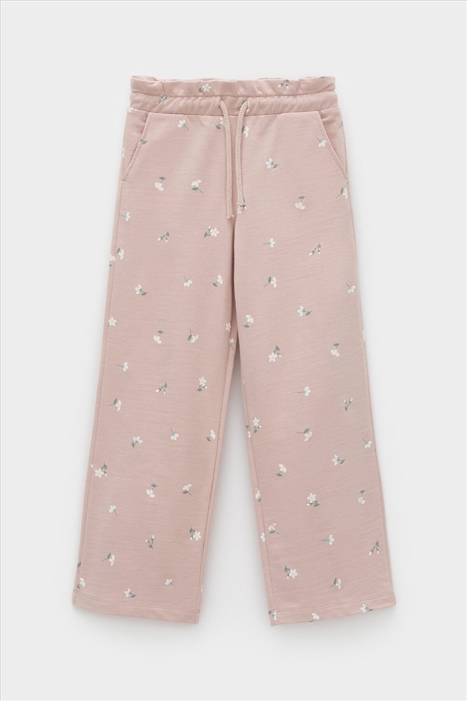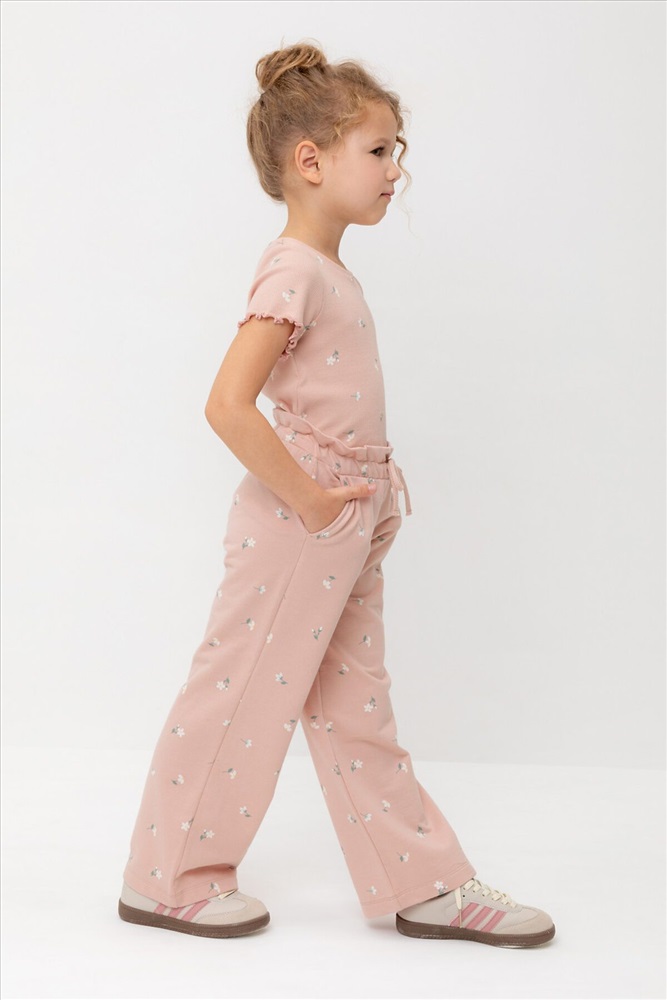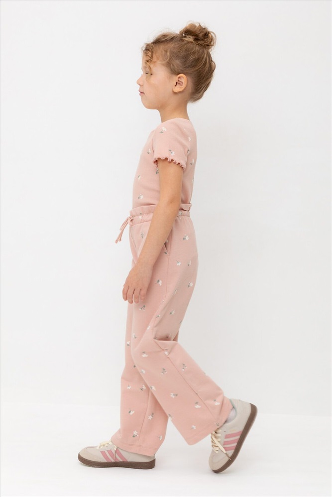 Удобные трикотажные брюки для девочки из высококачественного хлопка. Эластичный пояс регулируется при помощи шнурка. Оригинальная набивка выполнена из стойких текстильных красителей. Изделие сохраняет цвет и форму после многократных стирок.
