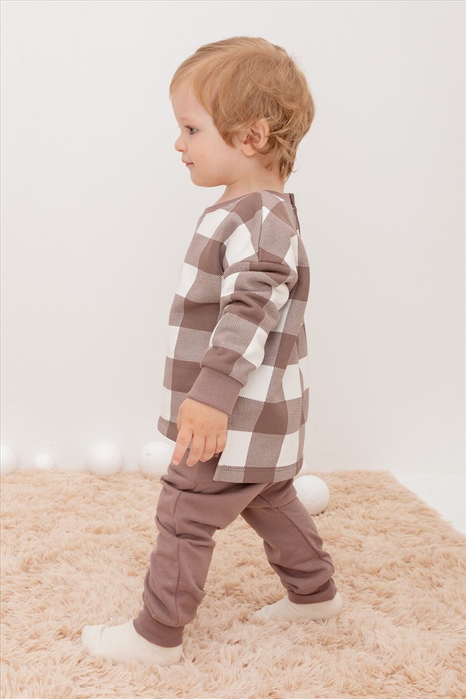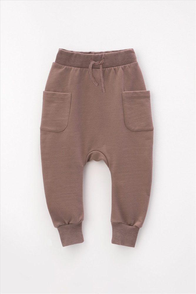 Трикотажные брюки для мальчика из футера с начёсом. В составе 80% натурального хлопка и 20% полиэстера, при этом полиэстер ввязан внутрь по особой технологии и не соприкасается с кожей. Эластичный пояс на резинке регулируется по ширине с помощью шнурка, по бокам два удобных накладных кармана, внизу эластичные манжеты.