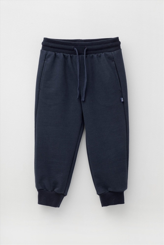 Трикотажные брюки для мальчика из петельчатого футера. Эластичный пояс на резинке регулируется по ширине с помощью шнурка, по бокам два удобных кармана, внизу эластичные манжеты.