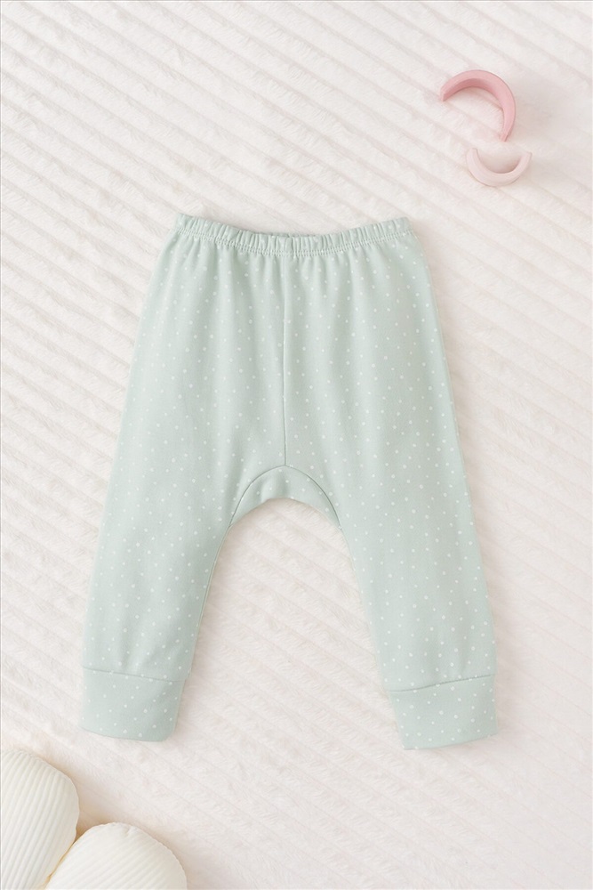 Брюки для новорождённой девочки из мягкого, эластичного трикотажа, произведенного из натурального хлопка. Пояс на резинке. Оригинальная набивка выполнена из стойких, гипоаллергенных текстильных красителей. Все трикотажные полотна производятся в соответсвии с нормами Швейцарского сертификата ЭкоТекс.