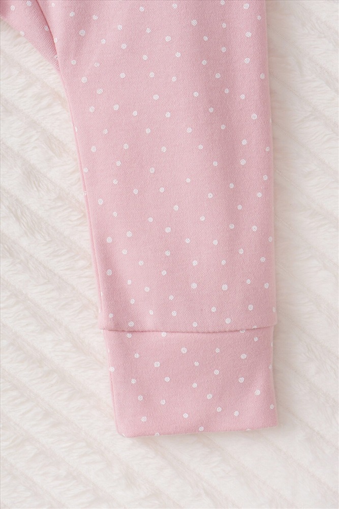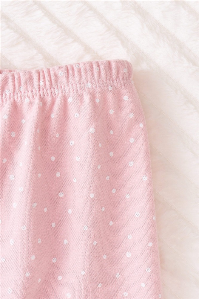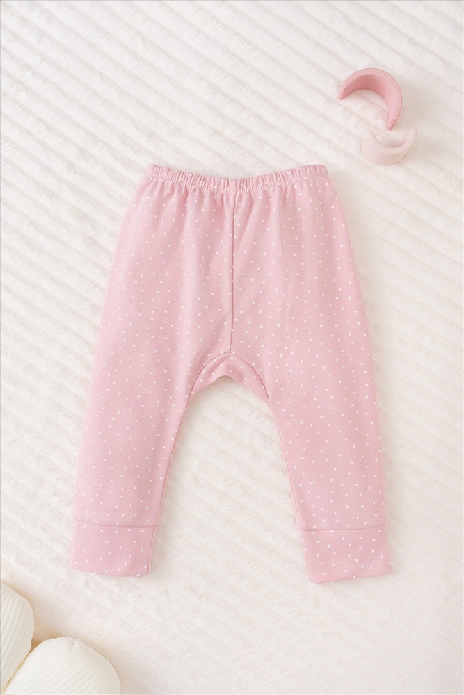 Брюки для новорождённой девочки из мягкого, эластичного трикотажа, произведенного из натурального хлопка. Пояс на резинке. Оригинальная набивка выполнена из стойких, гипоаллергенных текстильных красителей. Все трикотажные полотна производятся в соответсвии с нормами Швейцарского сертификата ЭкоТекс.