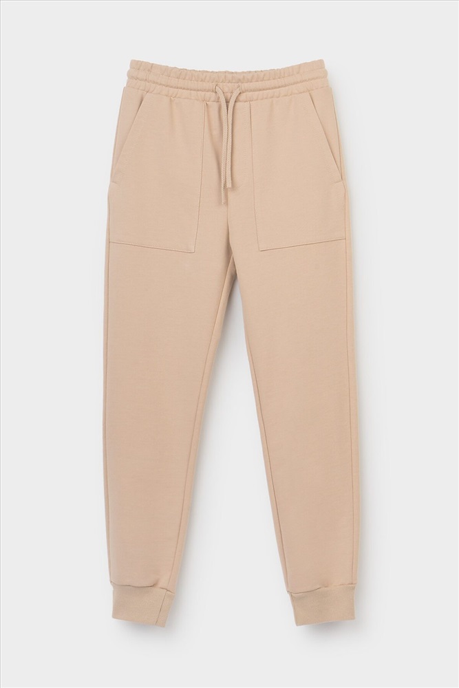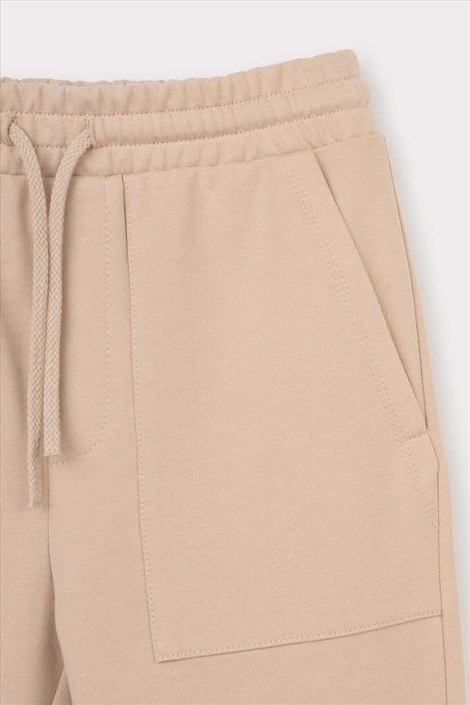 Трикотажные брюки для мальчика из петельчатого футера. Эластичный пояс на резинке регулируется по ширине с помощью шнурка, по бокам два удобных накладных кармана, внизу эластичные манжеты.