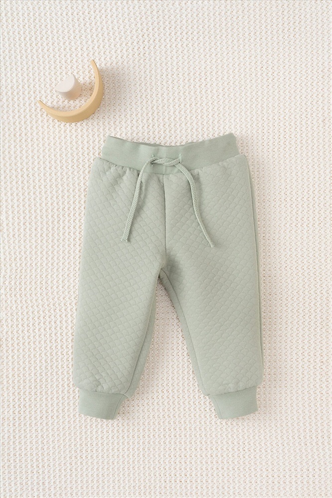 Брюки для новорожденных из капитония. Пояс на резинке из рибаны с лайккрой . У изделия эластичные манжеты. Капитоний - это стёганное трикотажное полотно с утеплителем из полиэстеровой нити. Все трикотажные полотна производятся в соответсвии с нормами Швейцарского сертификата ЭкоТекс.