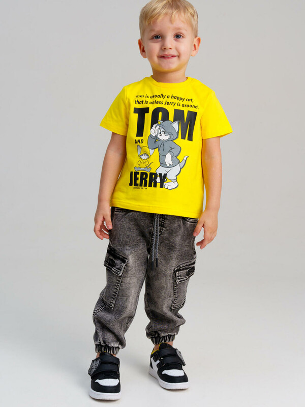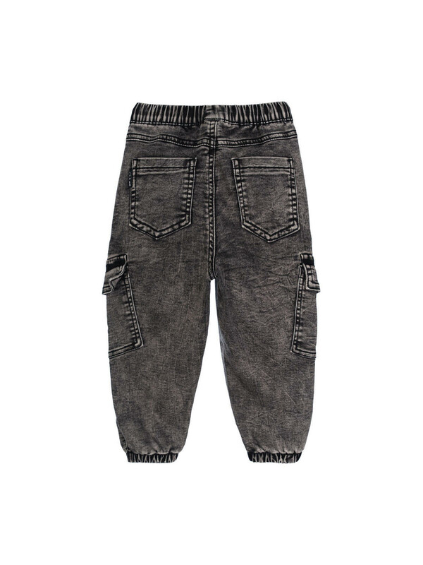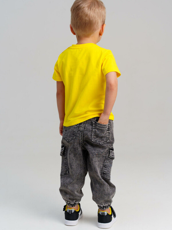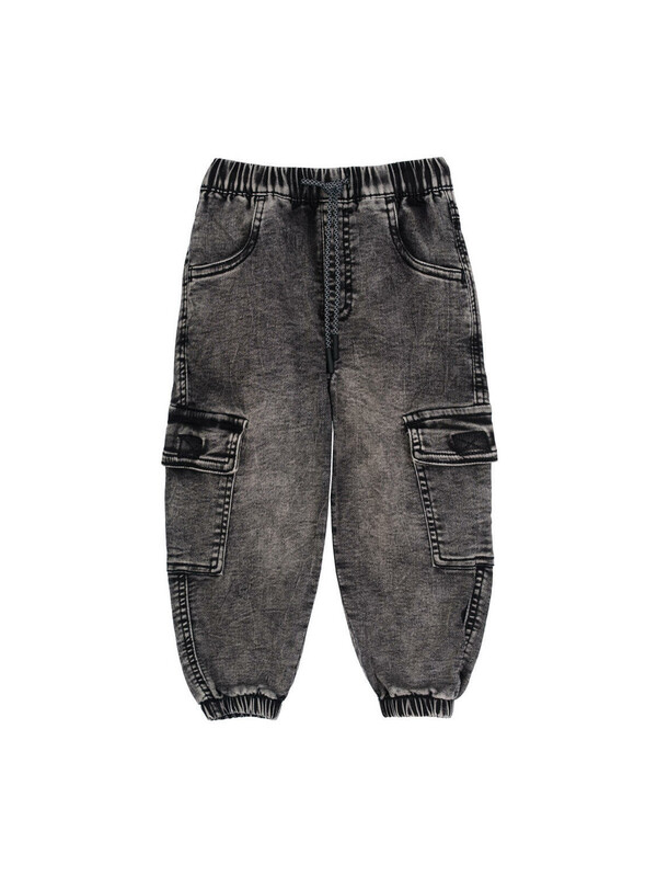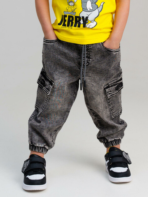 Джинсы детские для мальчика. Джинсы из сверхудобного эластичного материала Loop Denim. Loop denim имеет внешний вид классической джинсы, а по тактильным ощущениям мягкий и комфортный, как трикотаж. JOGGER FIT - спортивный крой. Средняя посадка. Джинсы на резинке со шнурком. Накладные карго-карманы. Модель выполнена из качественного и плотного текстиля.