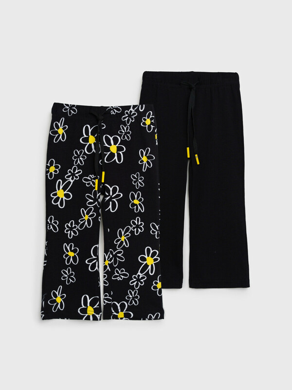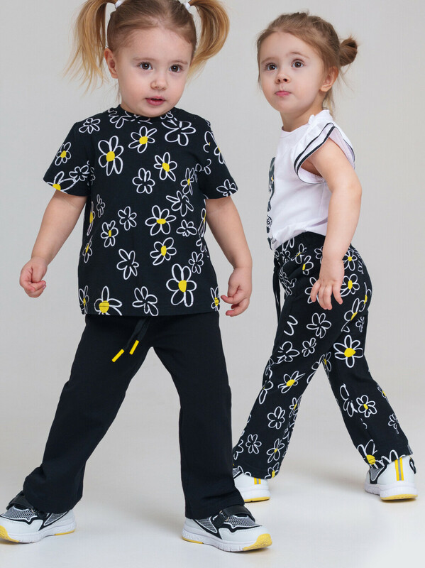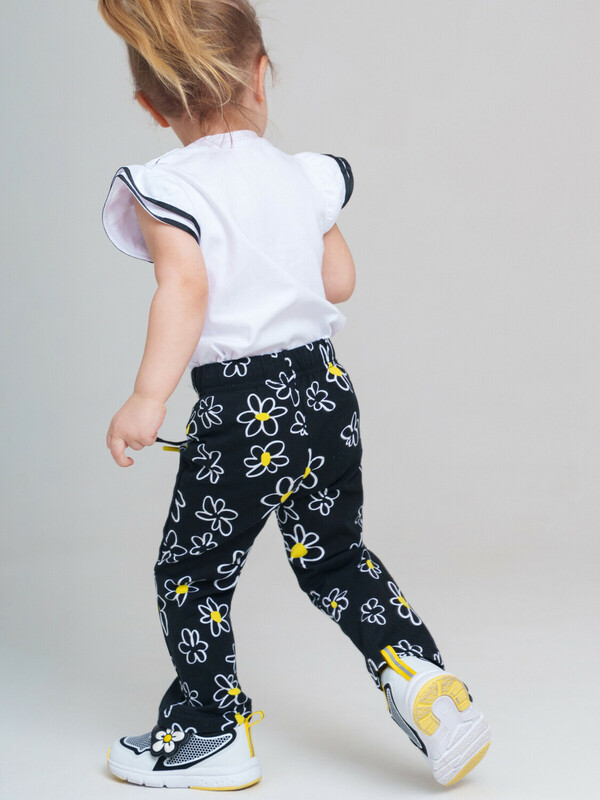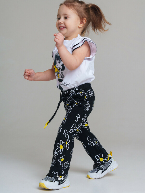 Набор детских брюк для девочки. Комплект брюк из качественного и приятного на ощупь трикотажа джерси. Штаны на резинке со шнурком. Высокое содержание хлопка. Благодаря наличию эластана в составе ткани изделие держит форму и меньше мнется. Модель выполнена из качественного и приятного на ощупь трикотажа.