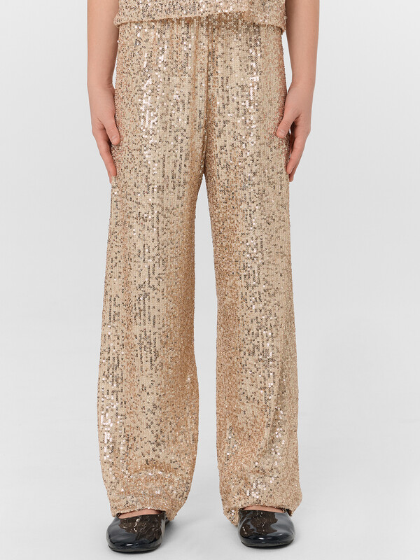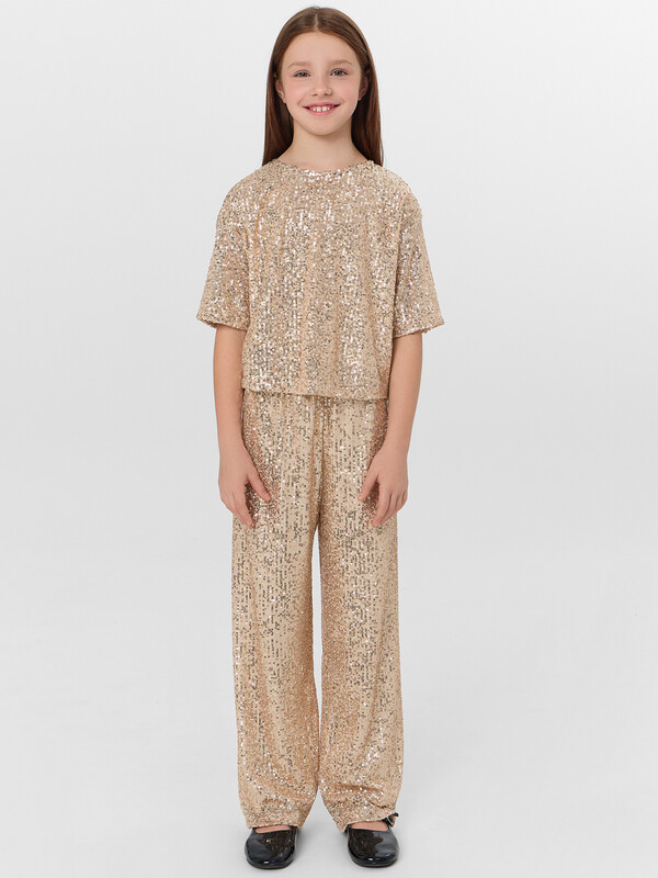 Брюки с пайетками для девочек станут ярким акцентом в образах, когда нужно выглядеть особенно. Эта модель свободного силуэта идеально подойдет для создания эффектных и стильных нарядов. Изделие выполнено в два слоя: нижний слой из нежной кулирки, обеспечивающей мягкость и комфорт при носке, и верхний слой из сетки, расшитой мерцающими пайетками, которые добавляют блеска и волшебства. Эти брюки создадут незабываемый образ и подарят ощущение праздника в каждой детали!