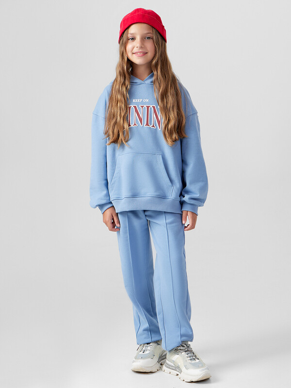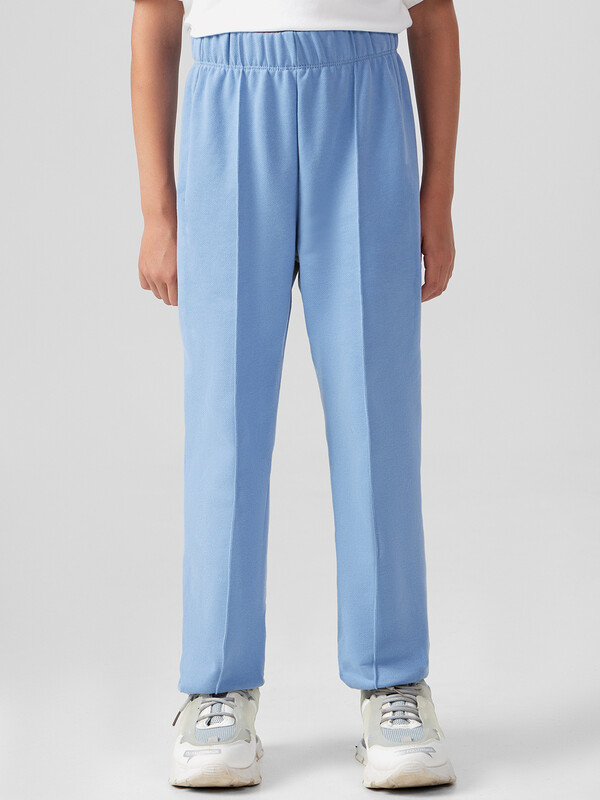 Брюки для девочек. Посадка на талии. Пояс цельнокроеный , внутрь застрочена эластичная тесьма 40RV. Боковые швы перенесены на перед. Низ изделия обработан швом в подгибку, внутрь застрочена эластичная тесьма.