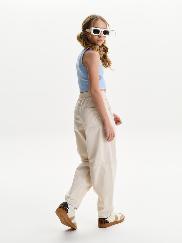 Состав: 100%хлопок Новинка, джинсы из тонкого денима твилла. Барелли, нового силуэта, пояс на резинке. Боковые карманы переда. Имитация гульфика.На уровне колена заложены вытачки по переду и по спинке, и дополнительные наклонные вертикальные вытачки от низа брюк, по преду и по спинке. По спинке кокетка, и накладные карманы. Пояс с внутренней утяжкой на шнурок. Джинсы barrel (или «бочонки») — это фасон свободного кроя, характеризующийся широкими штанинами в бедрах, которые постепенно сужаются к низу, напоминая форму бочонка. Они часто имеют высокую посадку и могут быть как укороченными, так и удлиненными, создавая интересный геометрический силуэт и балансируя между элегантностью и дерзостью. Твил — это плотная и прочная хлопчатобумажная ткань саржевого (диагонального) переплетения, которая отличается характерными диагональными линиями на поверхности. Комментарии к товару