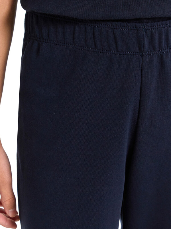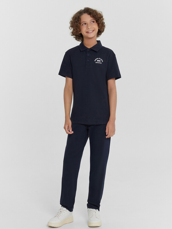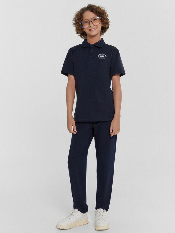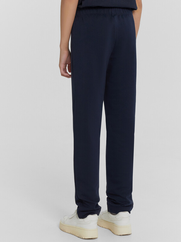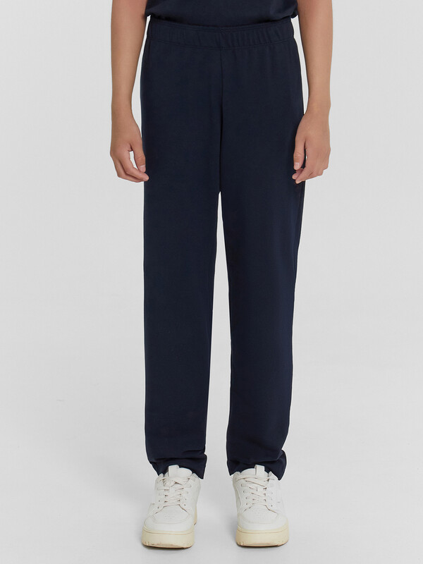 Брюки для мальчиков, выполнены из трикотажного футера без подчеса. Силуэт прямой. Пояс с эластичной тесьмой внутри. Низ брюк обработан швом вподгибку. Стильный выбор!