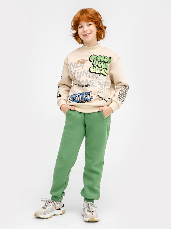 68% хлопок, 32% полиэстер. Вид застежки: без застежки Декоративные элементы: без элементов Модель брюк: классические Назначение: повседневная Особенности модели: нет Пол: Мальчики Тип карманов: прорезные Тип посадки: средняя Утеплитель: начес Уход за вещами: деликатная стирка при 30 градусах длина брючин по внутр. шву, см: 71,0 длина изделия по боковому шву - низ, см: 94,0 фактура материала: футер с подчесом ширина брючин - низ, см: 12,0 Комментарии к товару