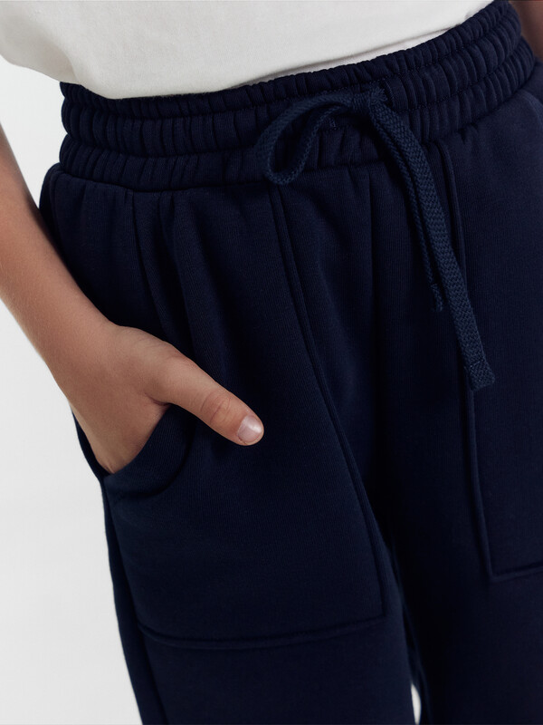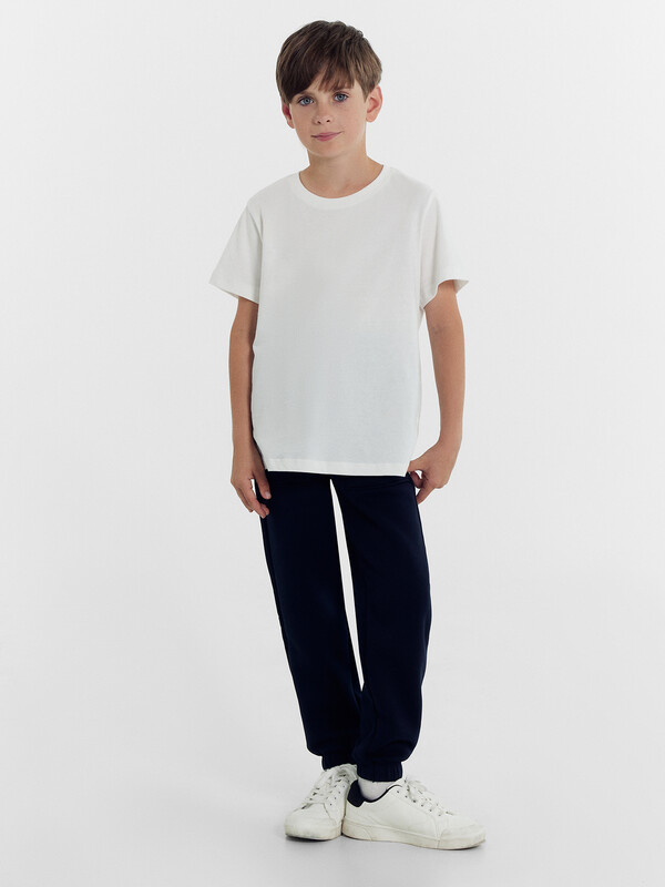Брюки-джоггеры для мальчика из высококачественного хлопка. Силуэт прямой. Посадка средняя. Пояс с эластичной тесьмой внутри и шнуром-завязкой. В боковых швах обработаны карманы. По низу брюк застрочена внутрь эластичная тесьма. Материал изделия футер без подчеса, очень мягкий и слегка эластичный, не скатывается, не создает парникового эффекта, в нем не жарко. Брюки для мальчика на резинке - отличный вариант на каждый день, подойдут для занятий на уроках физкультуры, прогулок, путешествий. В линейке широкий размерный ряд, есть много красивых базовых расцветок, а также стильные варианты с принтами. Если вы устали от скучных брюк для мальчиков, этот вариант точно понравится вам и вашему ребенку. К ним легко можно подобрать интересный верх из нашей линейки детской одежды. Изделие износостойкое, хорошо переносит стирки, не линяет и не выцветает при правильном уходе. Порадуйте своего ребенка отличным и универсальным подарком от Mark Formelle!