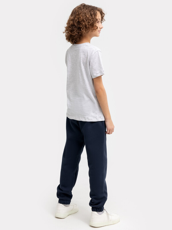 Пояс отрезной с эластичной тесьмой внутри. В передней части с лицевой стороны пробиты петли и втянут шнур (с застр. концами). Низ брюк обработан в подгибку с эластичной тесьмой внутри. 60% хлопок; 40% полиэстер Вид застежки: завязки Декоративные элементы: без элементов Модель брюк: джоггеры Назначение: повседневная Особенности модели: нет Пол: Мальчики Предмет: Брюки Тип карманов: в шве Тип посадки: средняя Утеплитель: начес Уход за вещами: деликатная стирка при 30 градусах длина брючин по внутр. шву, см: 66,2 длина изделия по боковому шву - низ, см: 89,8 фактура материала: футер с подчесом ширина брючин - низ, см: 12,5 Комментарии к товару