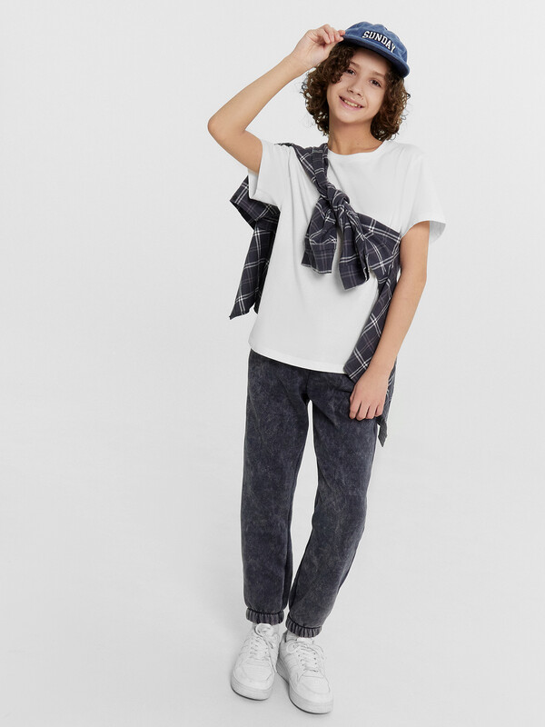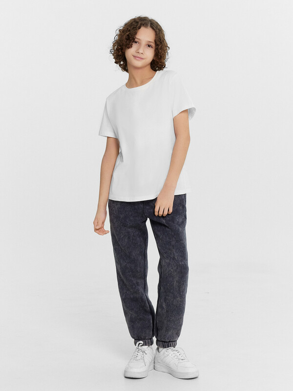 Брюки-джоггеры для мальчика из высококачественного хлопка в однотонном цвете. Силуэт прямой, посадка средняя, пояс с эластичной тесьмой внутри и шнуром-завязкой. Материал изделия футер без подчеса, очень мягкий и слегка эластичный, не скатывается, не создает парникового эффекта, в нем не жарко. Брюки для мальчика на резинке - отличный вариант на каждый день, подойдут для занятий на уроках физкультуры, прогулок, путешествий. В линейке широкий размерный ряд, есть много красивых базовых расцветок, а также стильные варианты с принтами. Если вы устали от скучных брюк для мальчиков, этот вариант точно понравится вам и вашему ребенку. К ним легко можно подобрать интересный верх из нашей линейки детской одежды. Широкий размерный ряд. Порадуйте своего ребенка отличным и универсальным подарком от Mark Formelle!