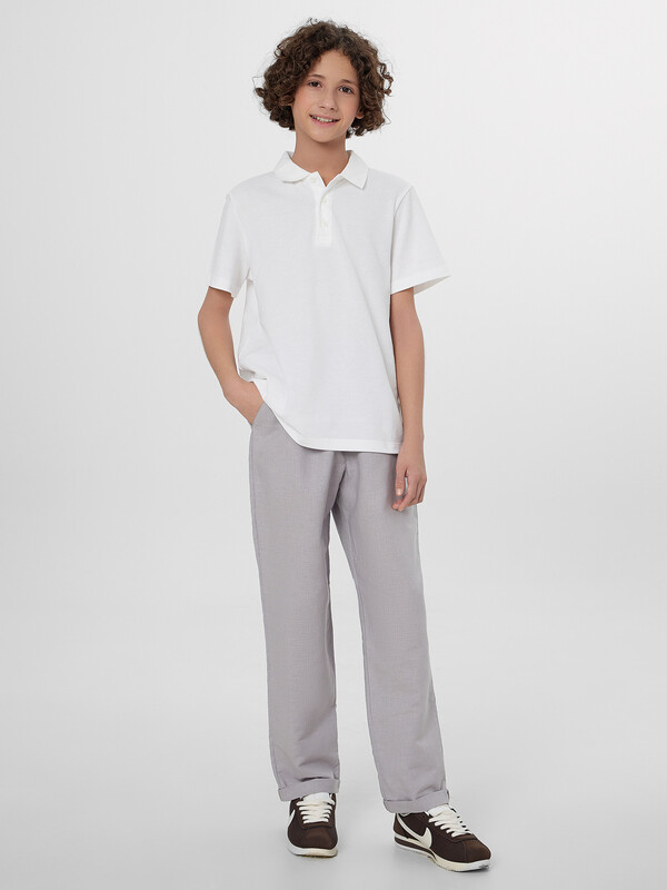 Брюки для мальчиков прямого силуэта станут отличным выбором для повседневного гардероба. Модель со средней посадкой и эластичным поясом на кулиске обеспечивает удобство и комфорт при носке. Спереди предусмотрена имитация гульфика, что добавляет стильности и практичности. Боковые карманы позволяют удобно хранить мелкие предметы, а низ изделия с отворотами придает брюкам завершенный и аккуратный вид. Эта модель выполнена из льна и хлопка, что делает их идеальными для теплой погоды, обеспечивая отличную воздухопроницаемость и комфорт. Высококачественные материалы гарантируют долговечность и удобство в течение всего дня. Брюки легко сочетаются с различными футболками, рубашками и свитерами, создавая стильные и удобные образы для мальчиков.