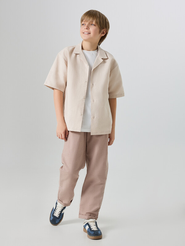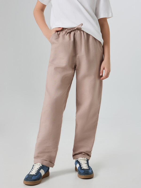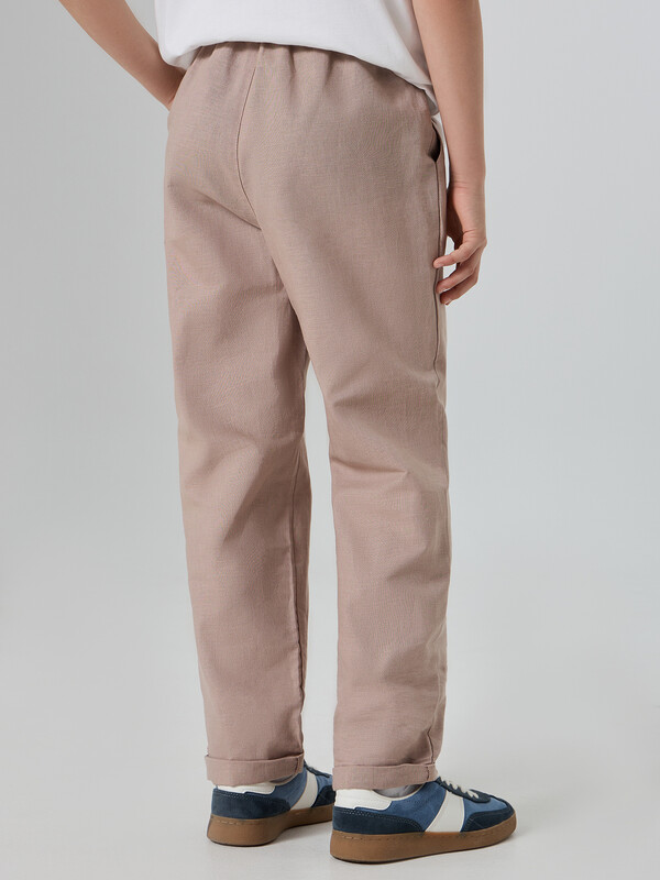 Брюки для мальчиков прямого силуэта станут отличным выбором для повседневного гардероба. Модель со средней посадкой и эластичным поясом на кулиске обеспечивает удобство и комфорт при носке. Спереди предусмотрена имитация гульфика, что добавляет стильности и практичности. Боковые карманы позволяют удобно хранить мелкие предметы, а низ изделия с отворотами придает брюкам завершенный и аккуратный вид. Эта модель выполнена из льна и хлопка, что делает их идеальными для теплой погоды, обеспечивая отличную воздухопроницаемость и комфорт. Высококачественные материалы гарантируют долговечность и удобство в течение всего дня. Брюки легко сочетаются с различными футболками, рубашками и свитерами, создавая стильные и удобные образы для мальчиков.