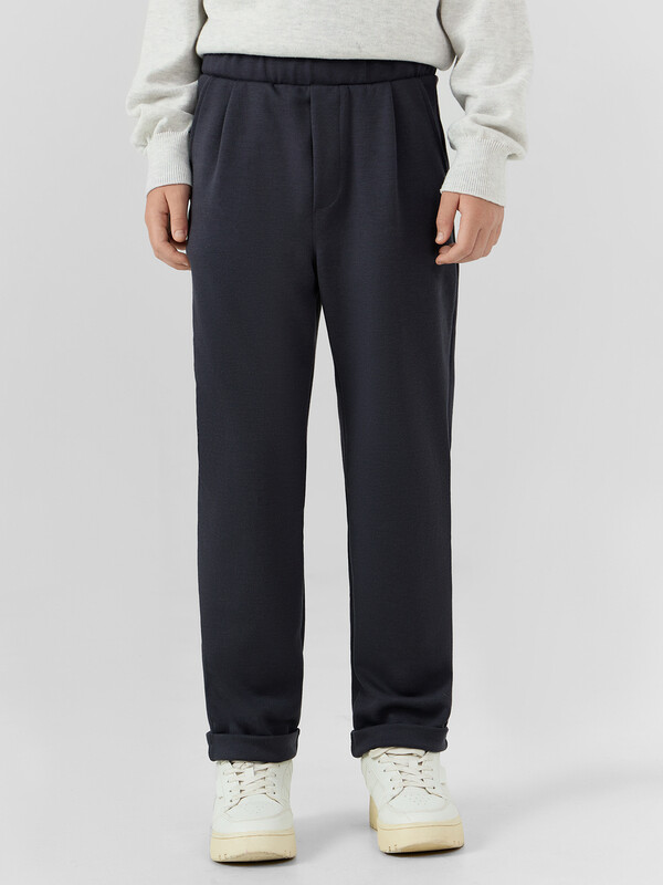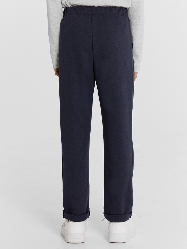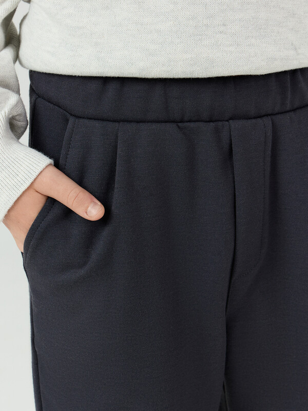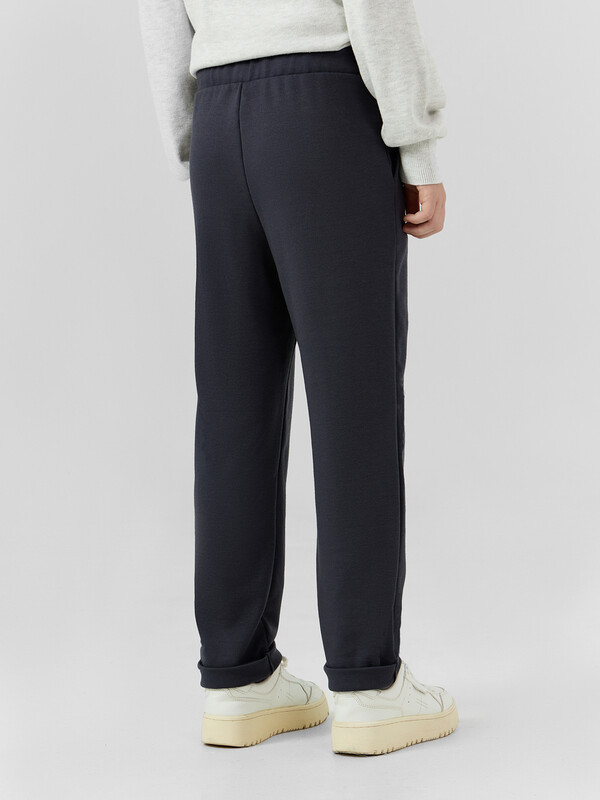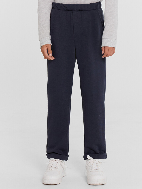 Брюки прямого силуэта. Посадка средняя. Пояс отрезной с эластичной тесьмой и шнуром внутри.По переду изделия карманы с отрезным бочком, декоративные защипы и ложный гульфик. Низ изделия подвернут. 70% полиэстер; 25% вискоза; 5% эластан Назначение: повседневная Предмет: Брюки Тип карманов: с отрезным бочком Тип посадки: средняя Уход за вещами: деликатная стирка при 30 градусах длина брючин по внутр. шву, см: 66,3 длина изделия по боковому шву - низ, см: 89,2 фактура материала: интерлок ширина брючин - низ, см: 16,1 Комментарии к товару