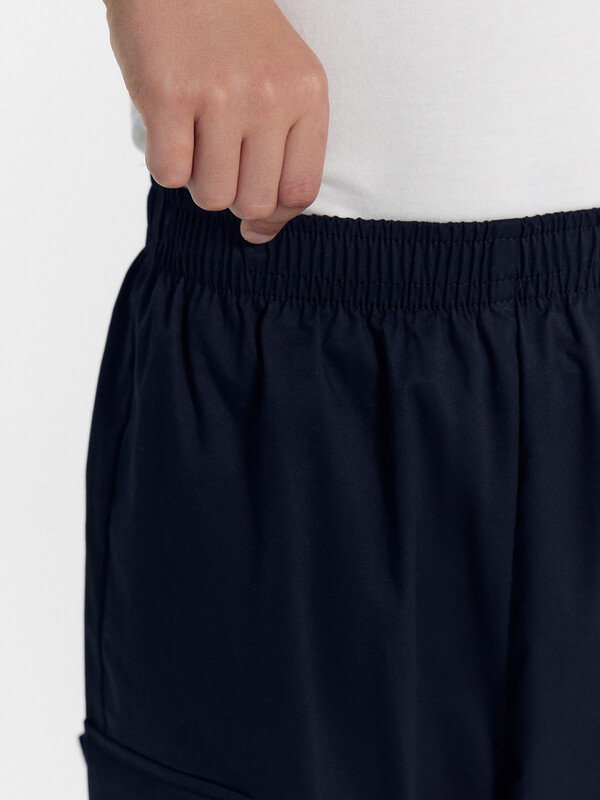 Производитель: Mark Formelle Брюки для мальчиков осенне-зимнего ассортимента. Брюки карго, посадка высокая. Пояс отрезной  с эластичной тесьмой внутри, образуют сборку. По поясу проложены отделочные строчки. На передних деталях карманы с отрезным бочком. По боковым швам накладные карманы с клапаном. На середине колена, передней детали заутюженные декоративные складки. По низу брюк подгибка с эластичной тесьмой с фиксаторами, образует сборку.