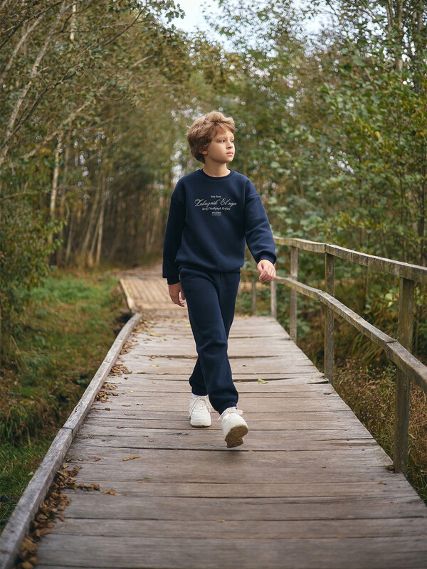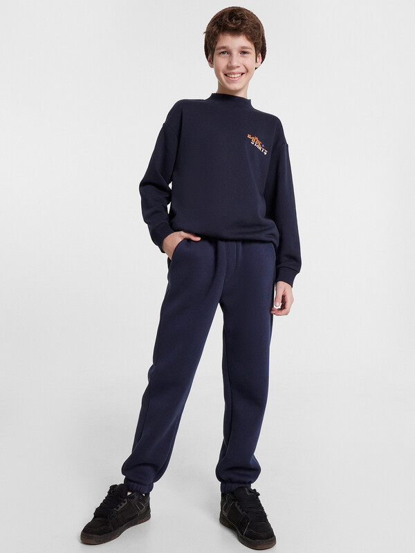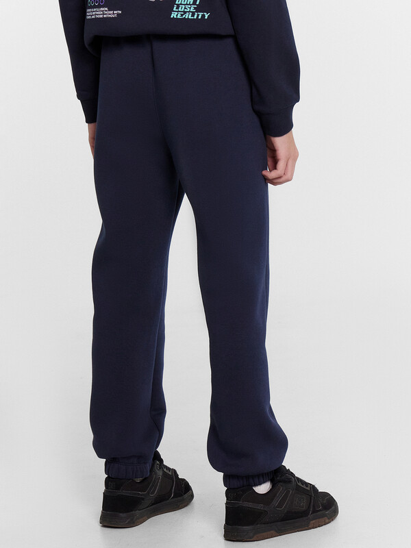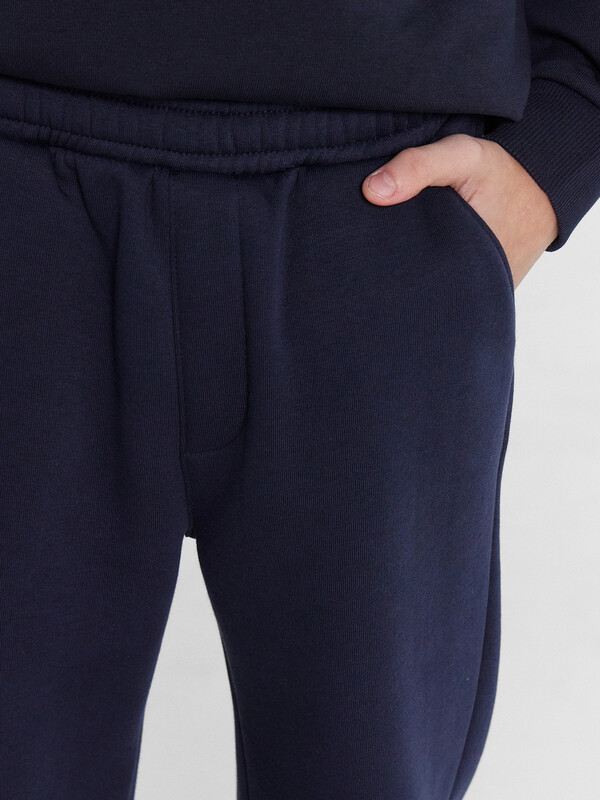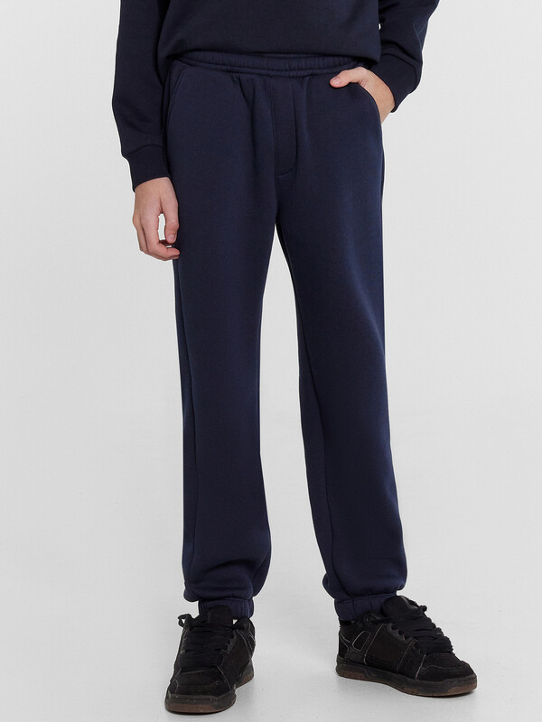 Брюки-джоггеры для мальчиков. Пояс отрезной с втачной эластичной тесьмой, внутри шнур. Пояс прострочен двумя отделочными строчками. По переду обработаны карманы с отрезным бочком. Низ брюк застрочен с эластичной тесьмой на двухигольной плоскошовной машине.