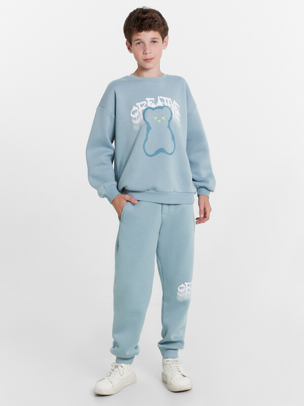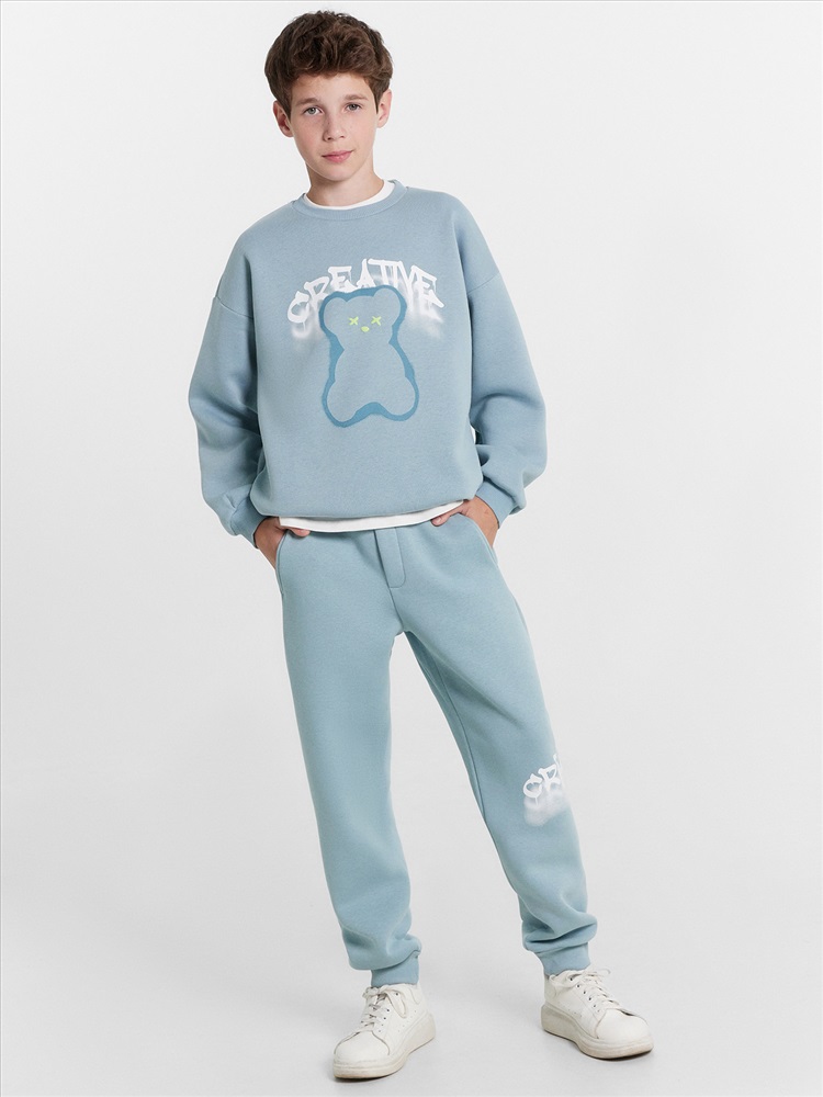 Брюки для мальчиков. Без бокового шва. Карманы в вытачке. Пояс отрезной с внутренней эластичной тесьмой 50RV. Пояс прострочен двумя отделочными строчками. Внутри в пояс втянут шнур 8 PX-2 . Низ брюк обработан манжетами из рибаны.