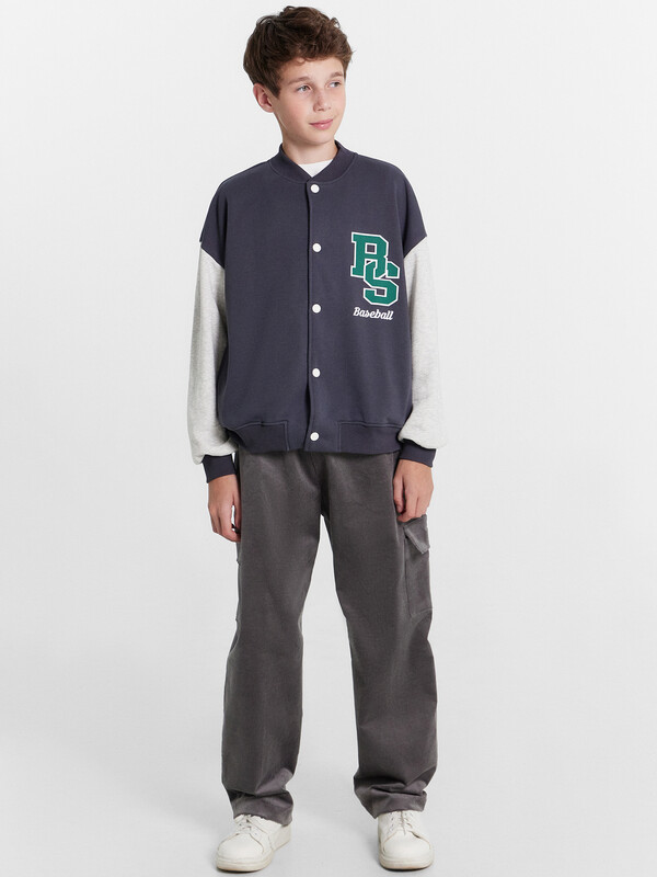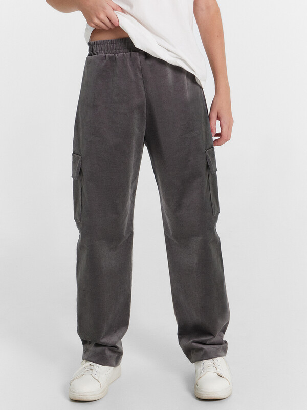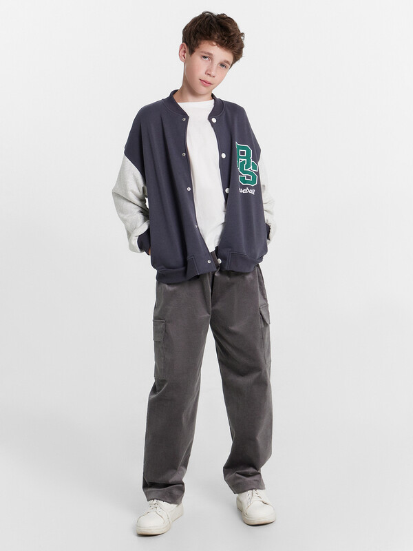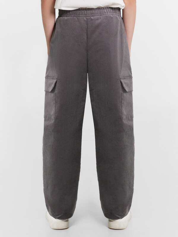Брюки прямого силуэта. Посадка средняя. Пояс отрезной, внутрь застрочена эластичная тесьма и шнур. По поясу две декоративные строчки. На передних деталях накладные карманы с наклонным входом. Ложный гульфик. По низу изделия внутрь застрочена эластичная тесьма.