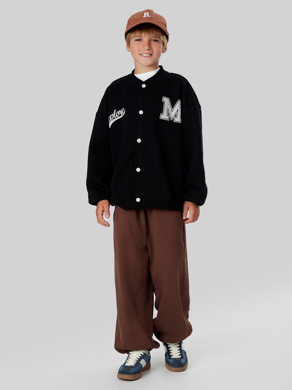 Брюки для мальчиков прямого силуэта с комфортной средней посадкой — универсальная модель, подходящая как для активного отдыха, так и для повседневной носки. Эластичный пояс обеспечивает надежную фиксацию на талии, не сдавливая живот и не ограничивая свободу движений, что особенно важно для детей. В боковых швах предусмотрены удобные карманы, позволяющие носить с собой мелкие вещи. Нижние срезы брюк обработаны швом вподгибку, благодаря чему изделие выглядит аккуратно и сохраняет форму даже после многократных стирок. Материал — футер без подчеса — отличается плотностью, мягкостью и устойчивостью к износу, при этом не перегревает и позволяет коже дышать. Брюки легко сочетаются с футболками, худи, свитшотами и спортивной обувью, оставаясь стильным и практичным элементом детского гардероба.