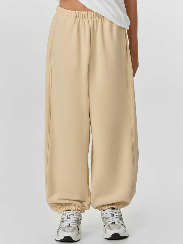Нижние срезы брюк обработаны швом вподгибку.